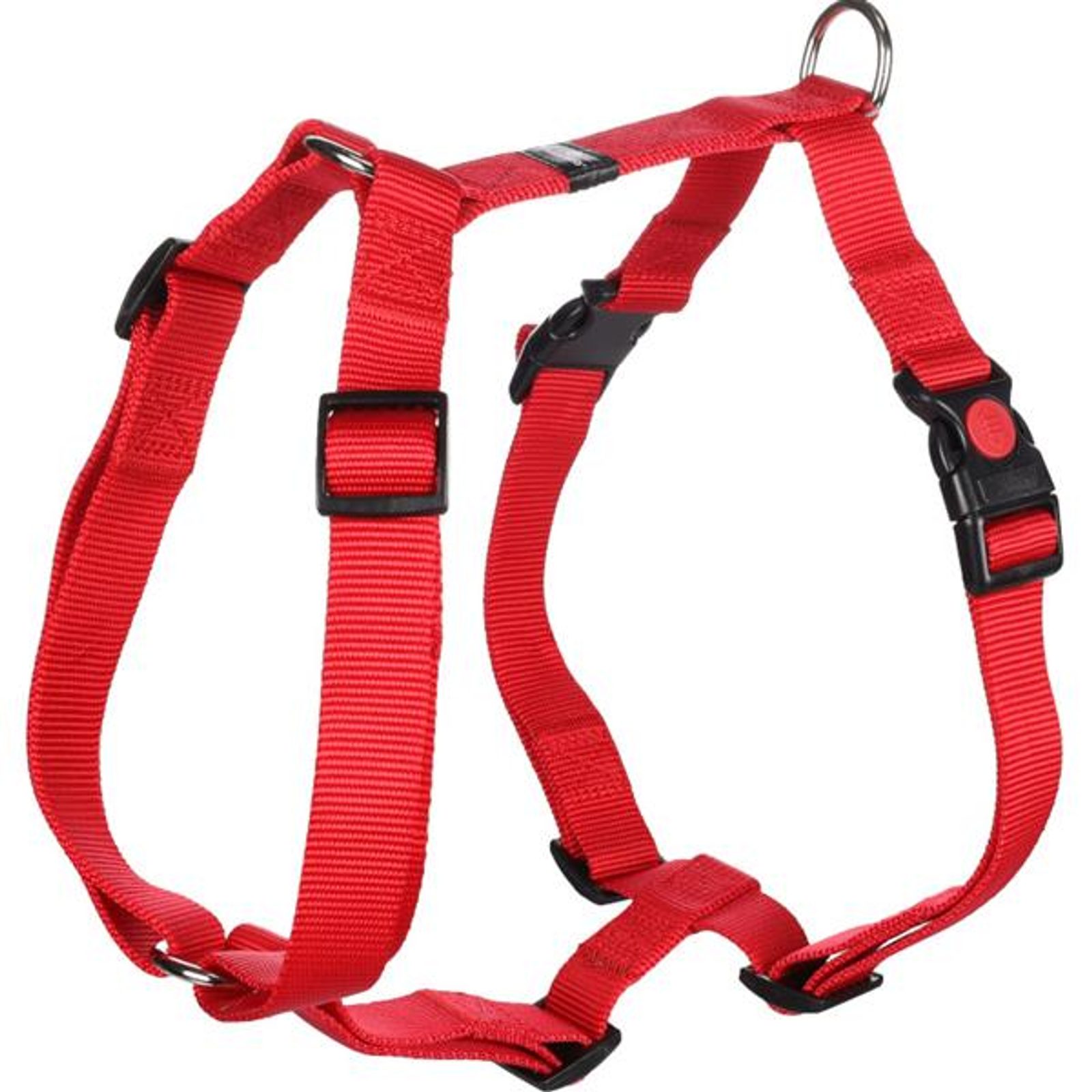 Postroj nylon Ziggi červený L 2,5x60-85cm Flamingo Postroj nylon Ziggy červený L 2,5x60-85cm Flamingo Postroj typu H pro psy Flamingo Ziggi je vyroben z pevného a voděodolného nylonu. Postroj je plně nastavitelný, takže lze snadno přizpůsobit tvaru těla psa. Zapíná se pomocí dvou plastových přezek – u velikostí S–XL s bezpečnostní pojistkou. Pro připnutí vodítka slouží kovový D-kroužek s lesklou niklovou povrchovou úpravou. Velikost: L Rozměry (cca): A = 60–85 cm, B = 70–100 cm (viz obrázek) šířka pásku 2,5 cm Materiál: nylon, kov, plast Barva: červená