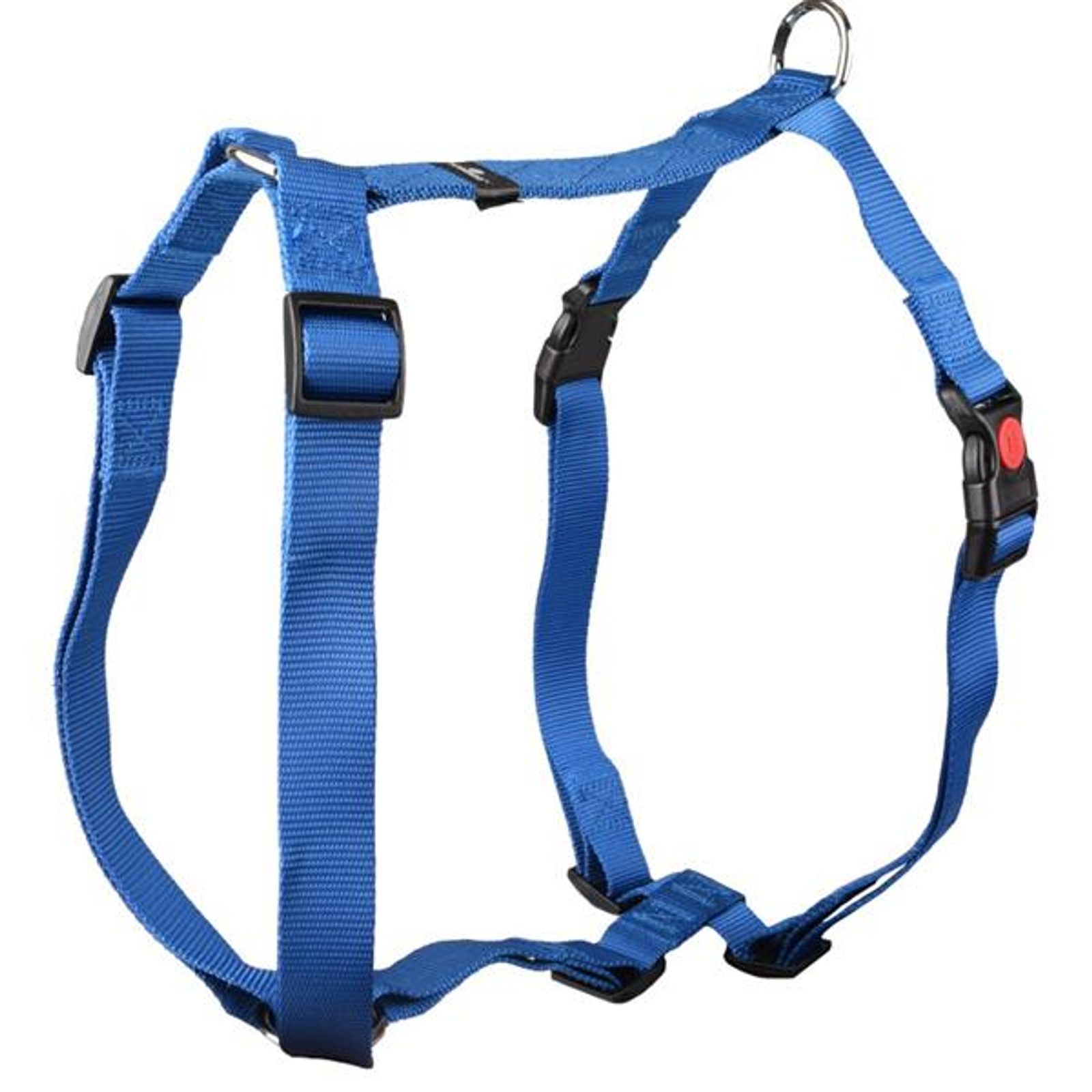 Postroj nylon Ziggi modrý XL 2,5x70-110cm Flamingo Postroj nylon Ziggy modrý XL 2,5x70-110cm Flamingo Postroj typu H pro psy Flamingo Ziggi je vyroben z pevného a voděodolného nylonu. Postroj je plně nastavitelný, takže lze snadno přizpůsobit tvaru těla psa. Zapíná se pomocí dvou plastových přezek – u velikostí S–XL s bezpečnostní pojistkou. Pro připnutí vodítka slouží kovový D-kroužek s lesklou niklovou povrchovou úpravou. Velikost: XL Rozměry (cca): A = 70–110 cm, B = 85–120 cm (viz obrázek) šířka pásku 2,5 cm Materiál: nylon, kov, plast Barva: modrá