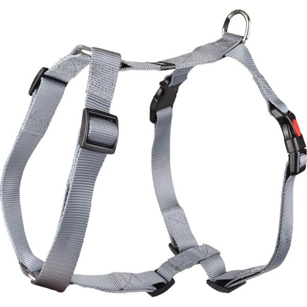 Postroj nylon Ziggi šedý L 2,5x60-85cm Flamingo Postroj nylon Ziggy šedý L 2,5x60-85cm Flamingo Postroj typu H pro psy Flamingo Ziggi je vyroben z pevného a voděodolného nylonu. Postroj je plně nastavitelný, takže lze snadno přizpůsobit tvaru těla psa. Zapíná se pomocí dvou plastových přezek – u velikostí S–XL s bezpečnostní pojistkou. Pro připnutí vodítka slouží kovový D-kroužek s lesklou niklovou povrchovou úpravou. Velikost: L Rozměry (cca): A = 60–85 cm, B = 70–100 cm (viz obrázek) šířka pásku 2,5 cm Materiál: nylon, kov, plast Barva: šedá