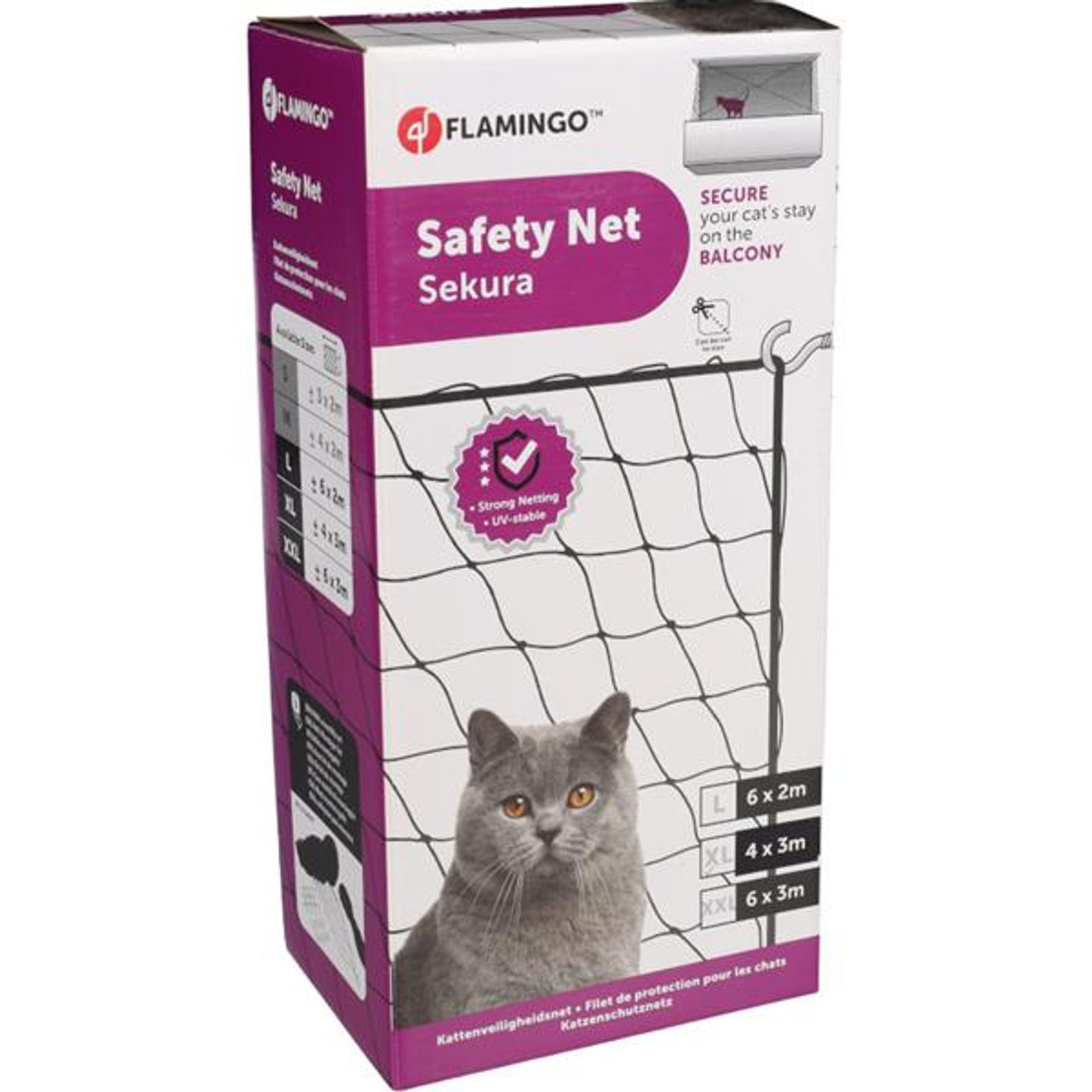 Síť ochranná do oken pro kočky flamingo 3x4m 15m Síť ochranná do oken pro kočky flamingo 2x3m 11m Dopřejte své kočce svobodu při prozkoumávání bytu či venkovních prostor bez obav, že uteče nebo se zraní při pádu. Ochranná síť vytvoří bezpečný prostor z balkónu či terasy, zabezpečí otevřená okna či dveře apod. Síť je pevná, snadno se instaluje a velikost lze upravit ustřižením. Balení obsahuje kromě sítě také popruhy pro její napnutí a upevňovací systém (háčky s hmoždinkami). Síť je odolná vůči UV záření a povětrnostním vlivům. Návod je k dispozici zde. Rozměry (cca): 2 × 3 m Velikost oka (cca): 3 × 3 cm Materiál: plast Barva: černá