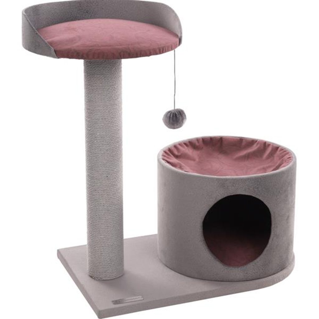 Škrabadlo Roselle Kara Flamingo 65x35,5x65cm šedé Škrabadlo Roselle Kara Flamingo 65x35,5x65cm šedé Škrabadlo střední velikosti v šedé barvě s pelíškem na odpočívání. Škrabadlo obsahuje pelíšek, který je polstrovaný a domeček. Domek i pelech je polstrovaný a ze spodní strany potažený látkou. Obsahuje kuličku, která je zavěšená na škrabadla pro aktivnější zábavu vaší kočky. Rozměry: 65 × 35,5 × 65 cm Použití: Sestrojte dle návodu a umístěte na vhodném místě ve Vašem bytě. Kočky musí mít možnost k broušení svých drápků. Ve volné přírodě jim k tomu nejlépe slouží stromy a jejich kůra. V bytě jim pak musíte Vy nabídnout tu pravou a vhodnou alternativu. Jinak si malý nezbeda najde náhradu například ve Vašem nábytku, křesle nebo koberci.