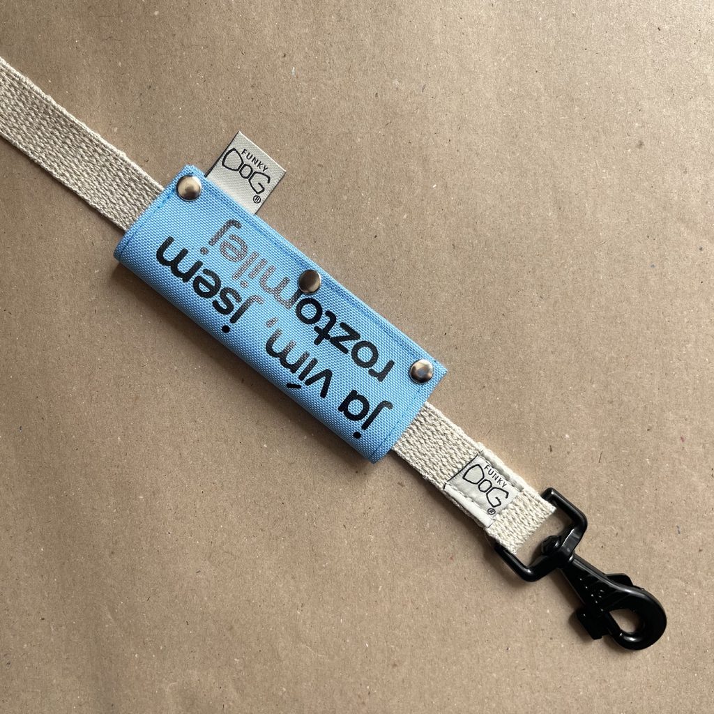 Chcete na procházkách pobavit kolemjdoucí, sdělit něco důležitého nebo jednoduše rozesmát ostatní pejskaře? Náš návlek na vodítko je stylový, minimalistický a hlavně unikátní doplněk, díky kterému můžete na každé vycházce vyjádřit svůj názor, náladu nebo vtipnou hlášku.
