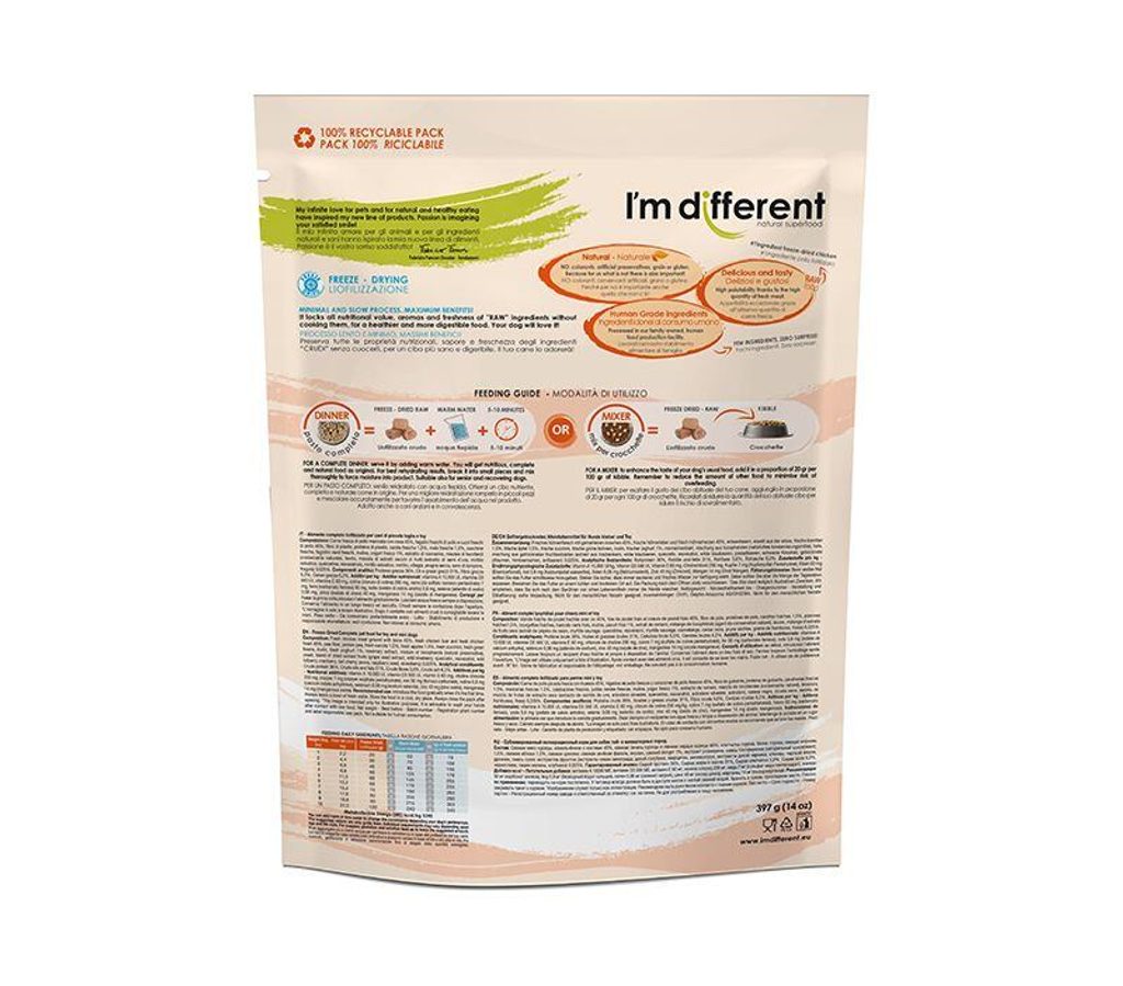 I´M DIFFERENT Chicken DINNER, mrazem sušené raw krmivo s kuřetem, 156 g