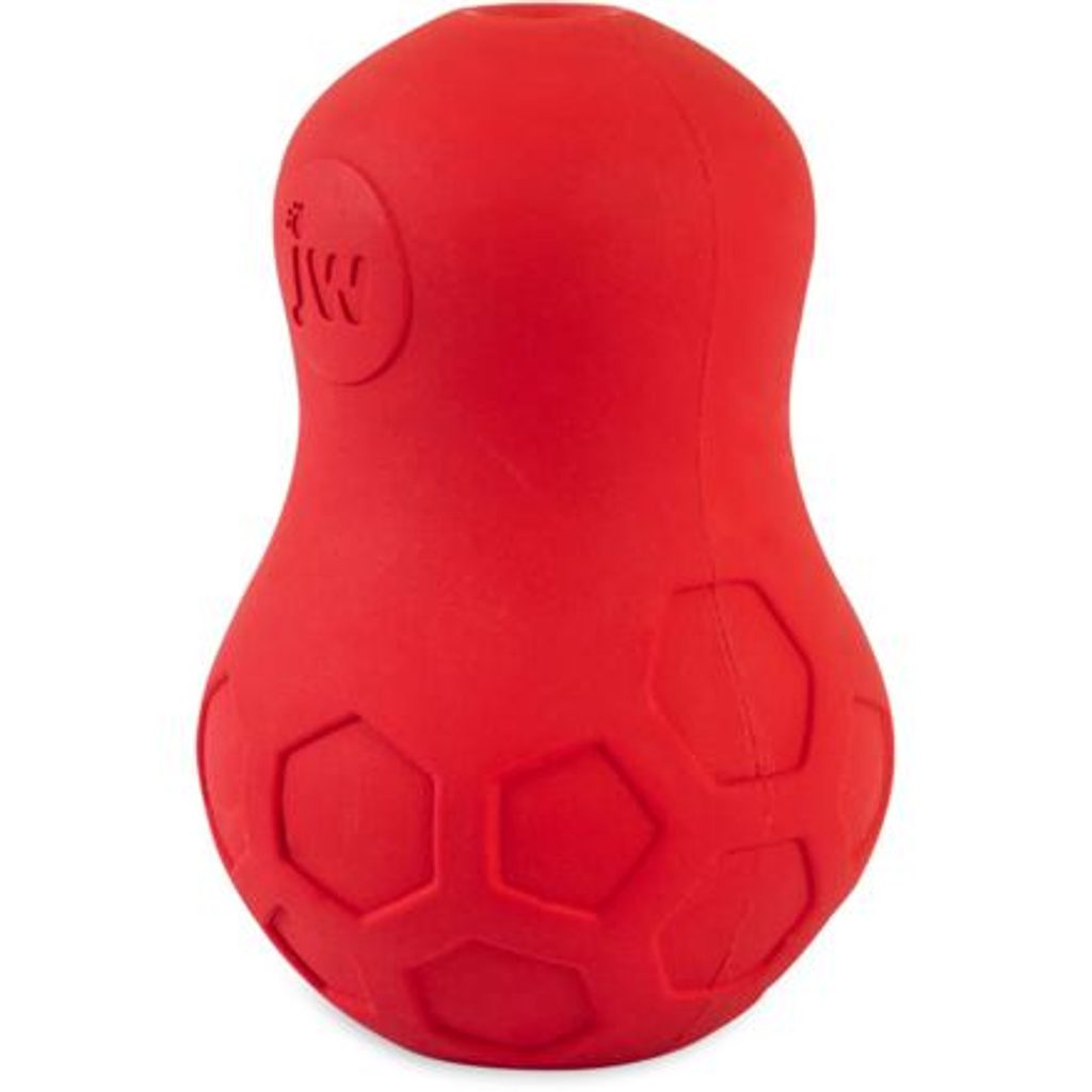 Plnící interaktivní gumová hračka v červené barvě. Hračka se kolébá a odráží, přičemž pamlsky nepředvídatelně propadávají skrz patra a…