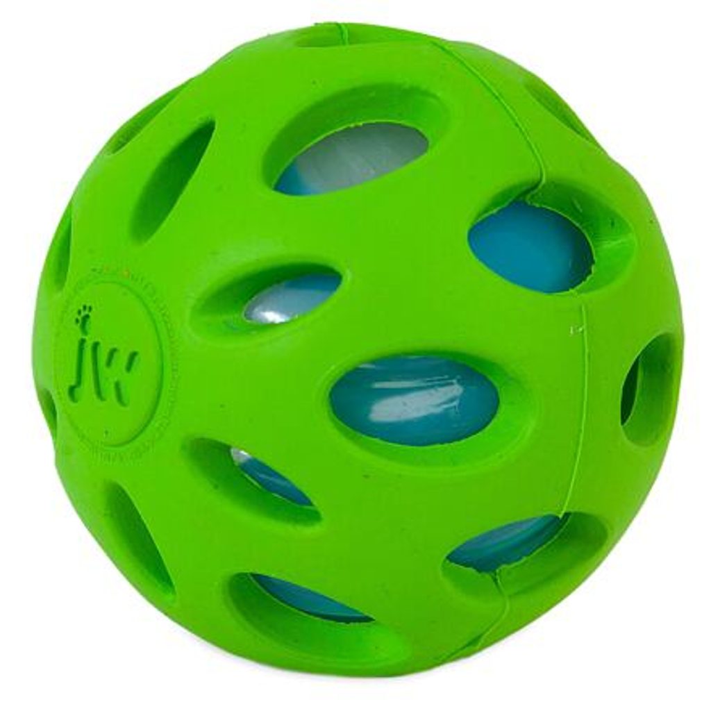 Gumový míček s dalším míčkem z PET lahve uvnitř. Ideální k házení a aportování nebo na samostatné hraní. Míčky