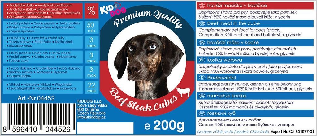 KIDDOG hovězí masíčko v kostičce - PREMIUM QUALITY 200 g dóza