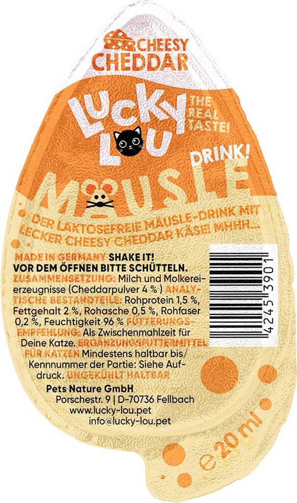 Sýrová pochoutka pro kočky, s neodolatelnou příchutí čedaru. Tekutý pamlsek, který přináší kočkám jedinečný chuťový zážitek, neobsahuje laktózu a je vhodný pro kočky všech věkových kategorií a velikostí. V originálním obalu ve tvaru myši! Lahodný