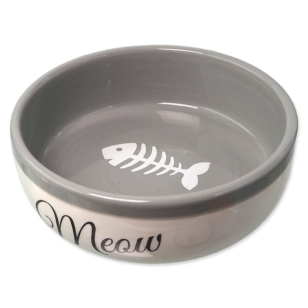 Miska Magic Cat keramická bílá/šedá Meow 13,4x4cm 170ml