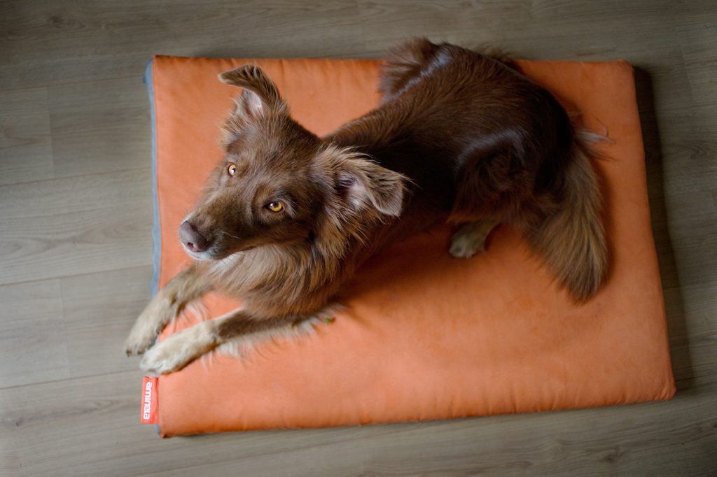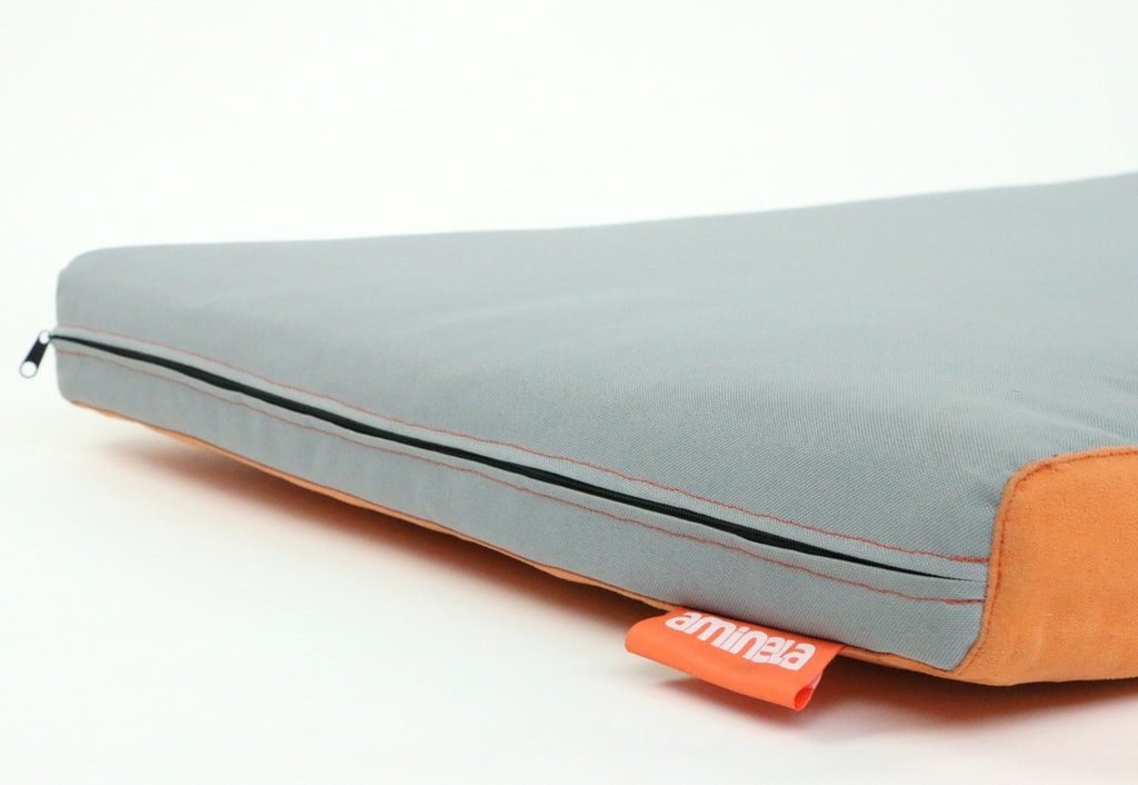 Matrace Aminela se skládá z dvou odolných materiálů, z voděnepropustného materiálu a měkkého, hebkého, avšak pevného a voděodpudivého materiálu, který nešustí a pro psa je velmi pohodlný.