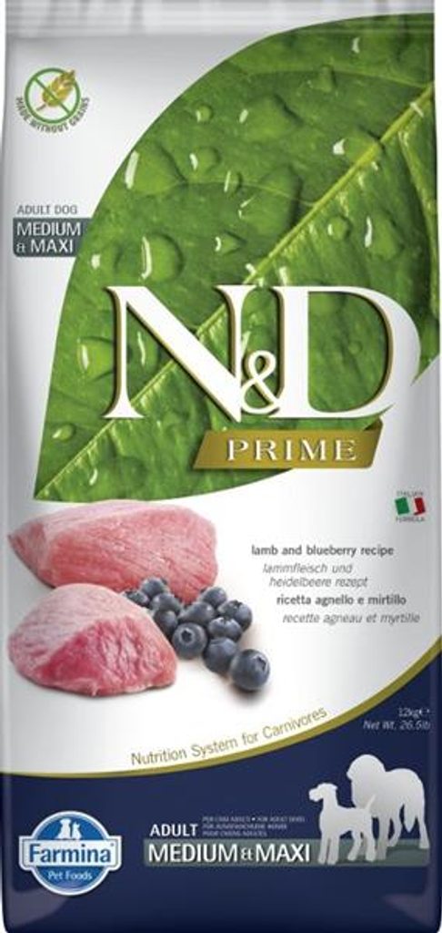 N&D PRIME Dog GF Lamb & Blueberry Adult Medium & Maxi 12 kg