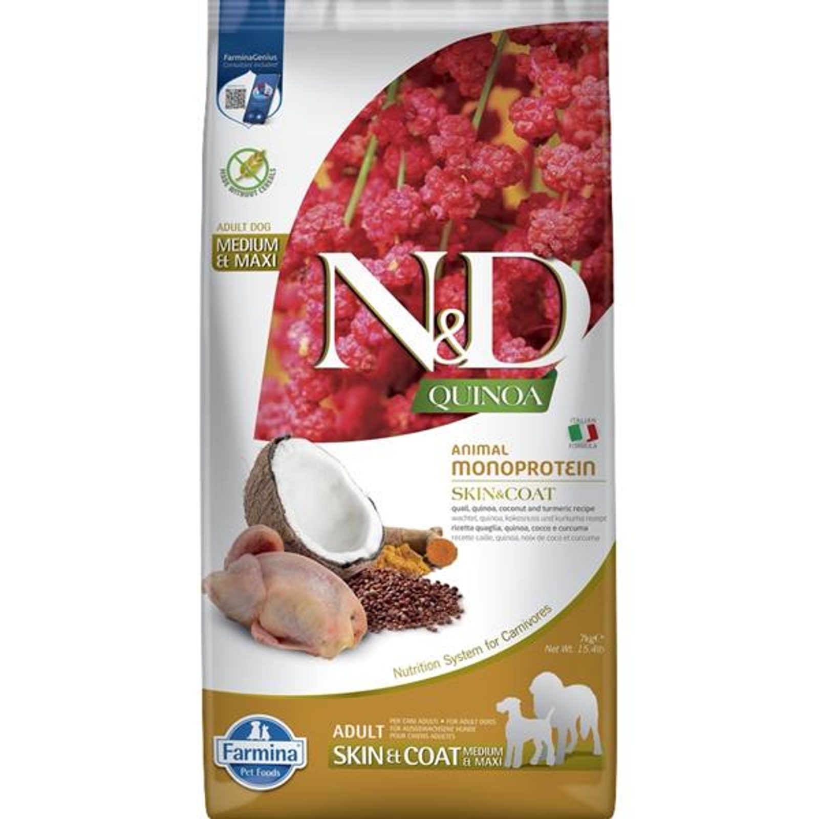 N&D QUINOA Dog GF Skin & Coat, Quail & Coconut Adult Medium & Maxi 7 kg