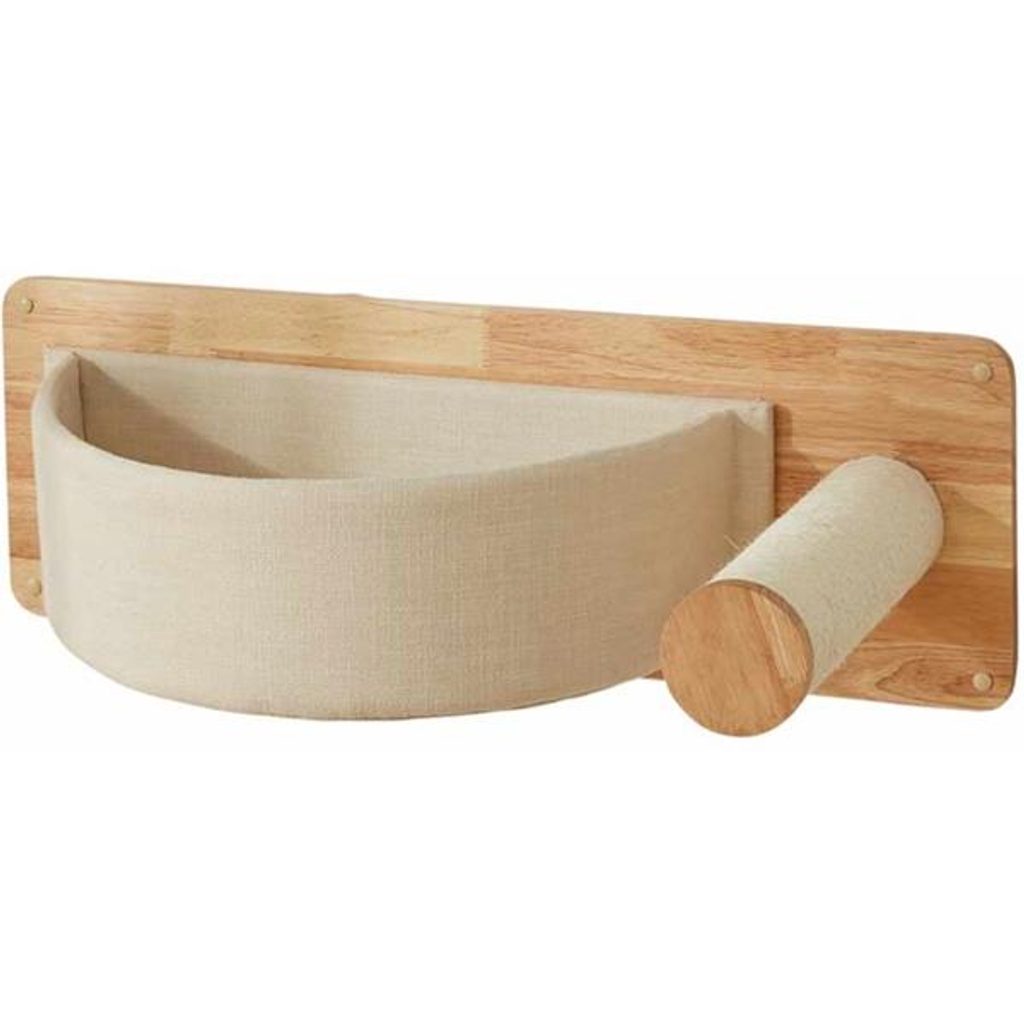 Nástěnný prvek pro kočku SIA jeskyně Nobby Nástěnný prvek pro kočku SIA jeskyně Nobby Půlkruhové odpočívadlo se sisalovým stupínkem poskytne vaší kočce místo k relaxaci i k broušení drápků. Sestavte kočičí království šité na míru vaší domácí šelmě i vašemu bytu. Stylové nástěnné prvky z kvalitního kaučukového dřeva v kombinaci s dalšími odolnými materiály nabízejí mnoho možností a variant uspořádání. Ušetříte díky nim prostor a pro svou kočku vytvoříte originální nástěnnou „krajinu“, kde si bude moci brousit drápky, hrát i odpočívat. Součástí balení je spojovací materiál pro upevnění prvku na zeď nebo na stěnu z dřevotřísky či sádrokartonu. Rozměry (cca): 73 × 34,5 × 25 cm sisalový stupínek O 9 cm Barva: krémová Materiál: kaučukové dřevo, sisal, pevná látka. Montážní návod je k dispozici ZDE.