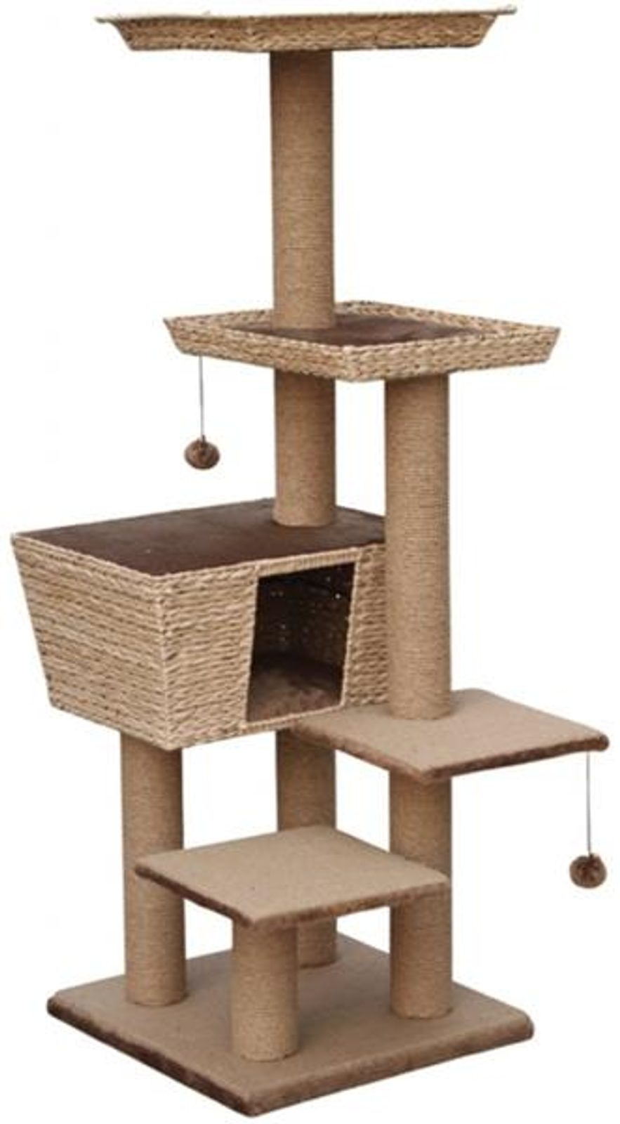 Škrabadlo Motega 141cm light brown Nobby Škrabadlo Motega 141cm light brown Nobby Přírodní škrábací strom z vodního hyacintu. Z různých možností k úkrytu a odpočinku si kočka může vybrat, kde se jí právě nejvíce líbí. Domeček z vodního hyacintu slouží jako úkryt a k nerušenému spánku. Velká polstrovaná výhledová podesta s okrajem z vodního hyacintu nabízí další místo ke spaní a naleznou zde dostatek místa i velké plemena. Odolnost tohoto domečku je dána především použitým přírodním materiálem, ale i kvalitním ručním zpracováním. Rozměry: rozměr základny 48x48x4 cm výška 141cm sisalový kmen O 9cm deska 4.patro: 43x43 cm deska 3.patro: 45x35 cm domeček: 48 x 40 x 25 cm Barva: Světlohnědá Upozornění: Stejně jako u jakéhokoliv jiného produktu, dohlížejte prosím na svého mazlíčka při hraní. Pravidelně produkt kontrolujte a v případě poškození (např. chybí části) vyměňte kvůli prevenci zranění zvířete.