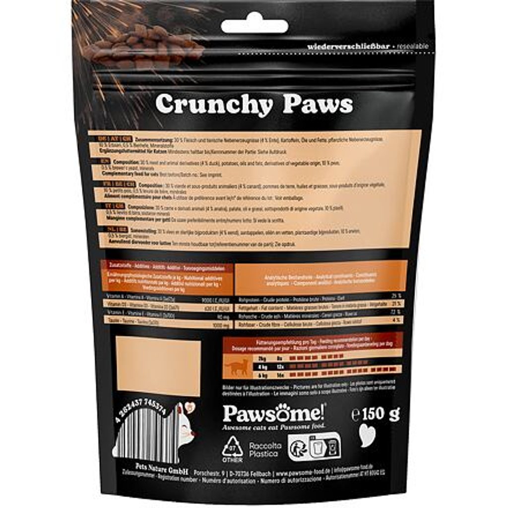 Křupavé pamlsky s lahodnou krémovou náplní potěší každou kočku. Kromě kachního masa obsahují i pivovarské kvasnice, taurin a směs vitamínů a minerálů, které přispívají ke zdraví koček v mnoha směrech. Přirozeně bez obilovin a přidaného cukru. Křupavé