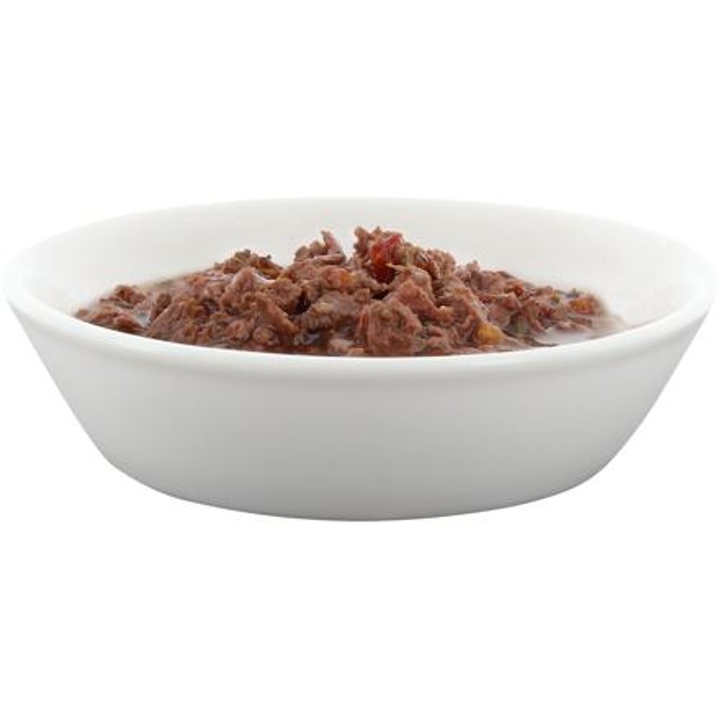 Kompletní krmivo s kousky telecího masa, rajčaty, tymiánem a rozmarýnem v lahodné omáčce. Nabízí starším kočkám jedinečný chuťový zážitek a zároveň jim dodává živiny, potřebné pro udržení dobré kondice a celkové spokojenosti. Šťavnaté