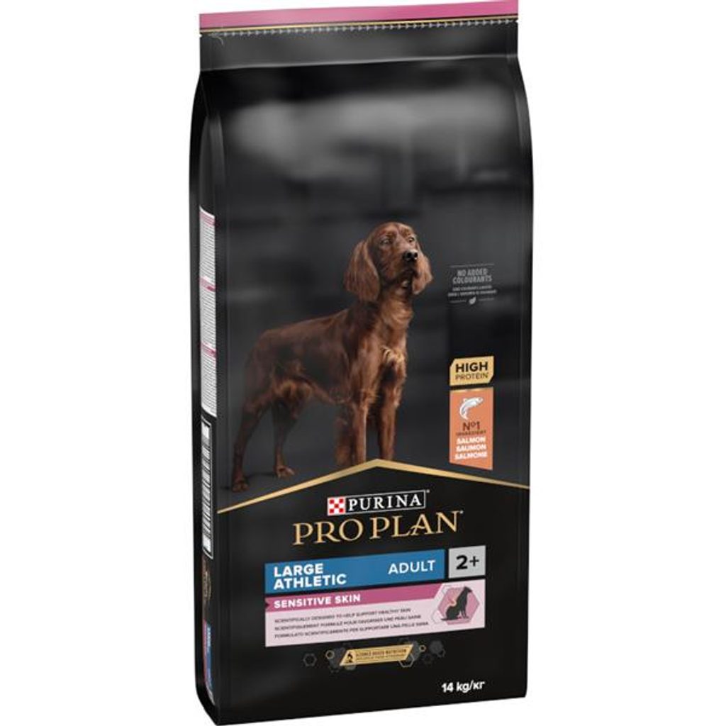 Pro Plan Dog Adult Large Athletic Sensitive Skin losos 14 kg PRO PLAN Dog Adult Large Athletic Sens.Skin 14 kg Pečujte o citlivou kůži a srst svého psa s krmivem PRO PLAN® Sensitive Skin, které je vědecky navrženo tak, aby pomáhalo udržovat kůži zdravou a srst lesklou. Hlavní složkou krmiva Purina PRO PLAN® Sensitive Skin jsou kousky vysoce kvalitního lososa. Granule jsou navržené tak, aby se svým složením přizpůsobily specifickým potřebám psů s citlivou kůží. Obsahují totiž vybrané zdroje bílkovin a nevyskytuje se v nich žádná pšenice. Zvýšené množství omega-3 mastných kyselin s dlouhým řetězcem (0,7 %) pomáhá citlivé kůži. Vysoký obsah bílkovin podporuje silné svaly, ideální tělesnou kondici a celkovou spokojenost vašeho psa. Krmivo bylo sestaveno tak, aby i citliví psi dobře prospívali. Krmivo Purina PRO PLAN® Sensitive Skin LARGE ADULT ATHLETIC bylo vyvinuto pro dospělé psy velkých, sportovních plemen (s hmotností nad 25 kg). Granule obsahují vitamín D, minerální látky a specifické množství omega-3 mastných kyselin (0,7 %), které přispívají ke zdraví zubů a dásní. Krmivo má vysoký podíl lososa, a tak zajišťuje optimální výživu velkých plemen od 24 měsíců až do 7 let. Následně byste měli přejít na produkty z řady Age Defence. Objevte výhody, které má řada Sensitive Skin pro každodenní zdraví a pohodu vašeho psa. Pokud chcete svému psovi dopřát rozmanitost, vyzkoušejte různé příchutě krmiva PRO PLAN® s dalšími benefity – například kuřecí v produktech Everyday Nutrition nebo krmivo s jehněčím z řady Sensitive Digestion pro citlivé zažívání. Vyrobeno na lince, která zpracovává i obiloviny. Benefity: Hlavní složka losos, vysoký podíl bílkovin Pro zdravou kůži a lesklou srst Vybrané zdroje bílkovin, složení bez pšenice Podporuje zdraví kloubů Vědecky ověřená výživa bez přidaných barviv Přizpůsobeno pro velká sportovní plemena Složení: losos* (17 %) (včetně hlavy, skeletu, masa), rýže* (14 %), sušené bílkoviny z lososa*, moučka z kukuřičné bílkoviny*, kukuřice*, živočišné tuky, kukuřičná krupice*, sójová mouka*, sušená řepná dužina*, dochucovací masové výtažky, kukuřičný škrob, sušená rostlinná vláknina, minerální látky, sušená vejce*, sójový olej, rybí tuk. *Zdroje bílkovin. Doplňkové látky: Nutriční doplňkové látky: m.j./kg: vit A: 37 000; vit D3: 1 000; vit E: 550; mg/kg: vit C: 140; síran železnatý monohydrát: (Fe: 120); jodičnan vápenatý bezvodý: (I: 1,9); síran měďnatý pentahydrát: (Cu: 13); síran manganatý monohydrát: (Mn: 46); síran zinečnatý monohydrát: (Zn: 110); seleničitan sodný: (Se: 0,035). Doplňkové látky: Nutriční doplňkové látky: m.j./kg: vit A: 37 000; vit D3: 1 000; vit E: 550; mg/kg: vit C: 140; 3b103: (Fe: 120); 3b202: (I: 1,9); 3b405: (Cu: 13); 3b503: (Mn: 46); 3b605: (Zn: 110); 3b801: (Se: 0,035). Doplňkové látky: Technologické doplňkové látky: mg/kg: 1b306i: 52. Doplňkové látky: Technologické doplňkové látky: mg/kg: tokoferolové extrakty z rostlinných olejů: 52. Analytické složky: protein: 28,0 %, obsah tuku: 18,0 %, obsah anorganických látek: 6,5 %, hrubá vláknina: 3,0 %, taurin: 0,1 %. Krmný návod: viz tabulka doporučených denních krmných dávek. Hodnoty uvedené v tabulce jsou pouze orientační. Pro udržení ideální tělesné kondice upravte krmnou dávku v závislosti na úrovni aktivity, fyzické kondici a individuálních potřebách psa. Čistá čerstvá pitná voda by měla být vždy k dispozici. Doporučujeme pravidelné návštěvy vašeho veterinárního lékaře.