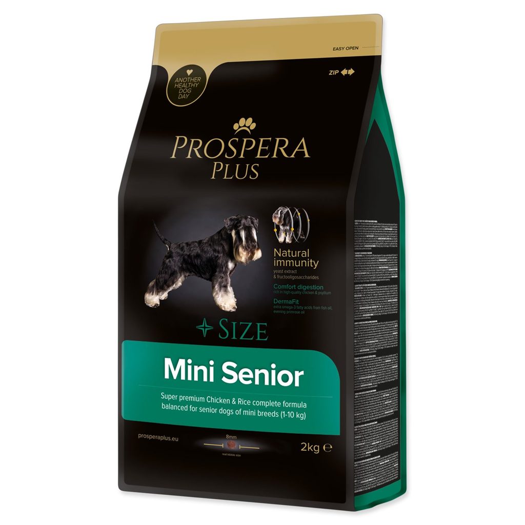 Krmivo Prospera Plus Mini Senior kuře s rýží 2kg Superprémiové kompletní krmivo kuřecí s rýží pro starší psy ve věku nad 7 let, malých a trpasličích plemen (1-10 kg).