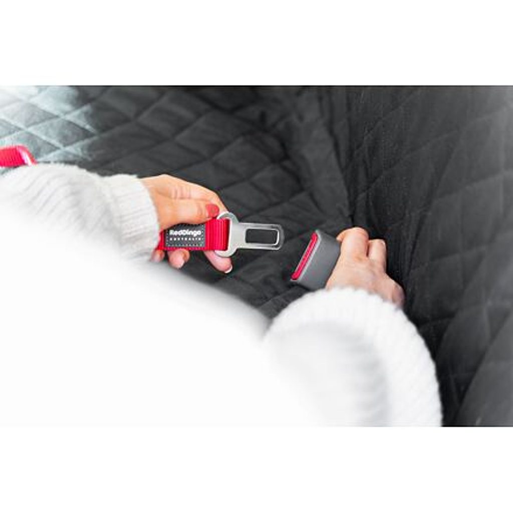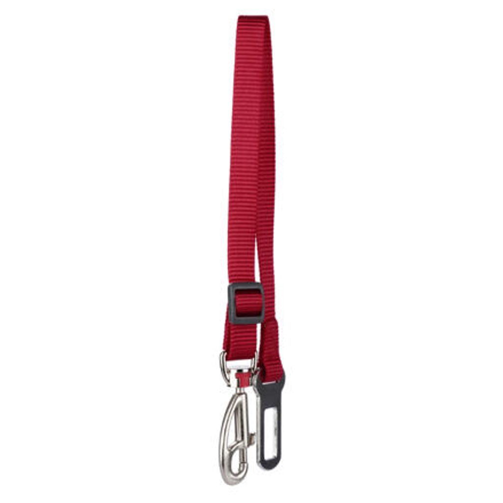 Bezpečnostní pás Red Dingo pro připoutání psa v autě. Šířka popruhu 25 mm. Barva červená. Bezpečnostní pás Red Dingo slouží k připoutání psa v autě tak, aby nerušil řidiče během jízdy. Sponu snadno zacvaknete do otvoru pro bezpečnostní pás auta a karabinu připnete k postroji. Zabraňuje také vyskočení psa z auta při otevření dveří.