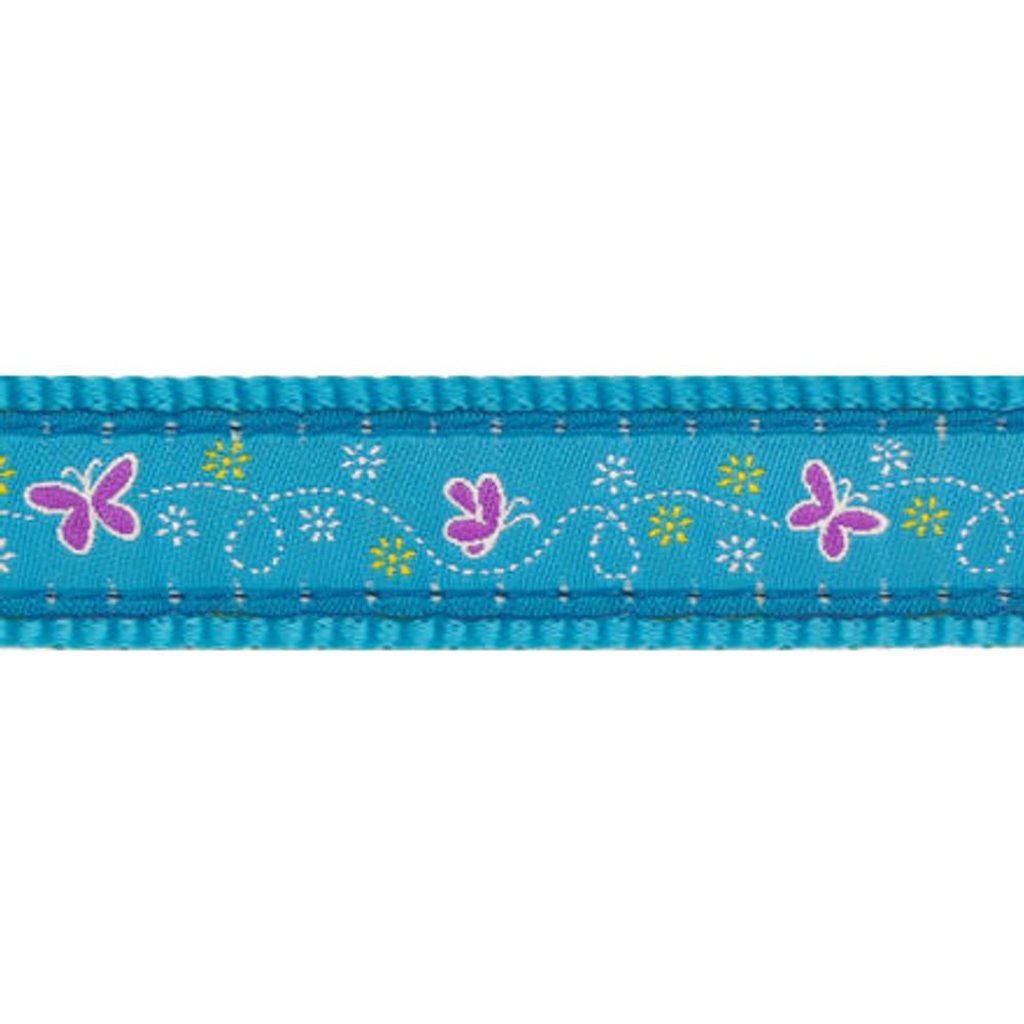 Obojek Red Dingo polostahovací pro psy s obvodem krku 26 - 40 cm. Šířka popruhu 15 mm. Vzor Butterfly Turquoise. Velikost