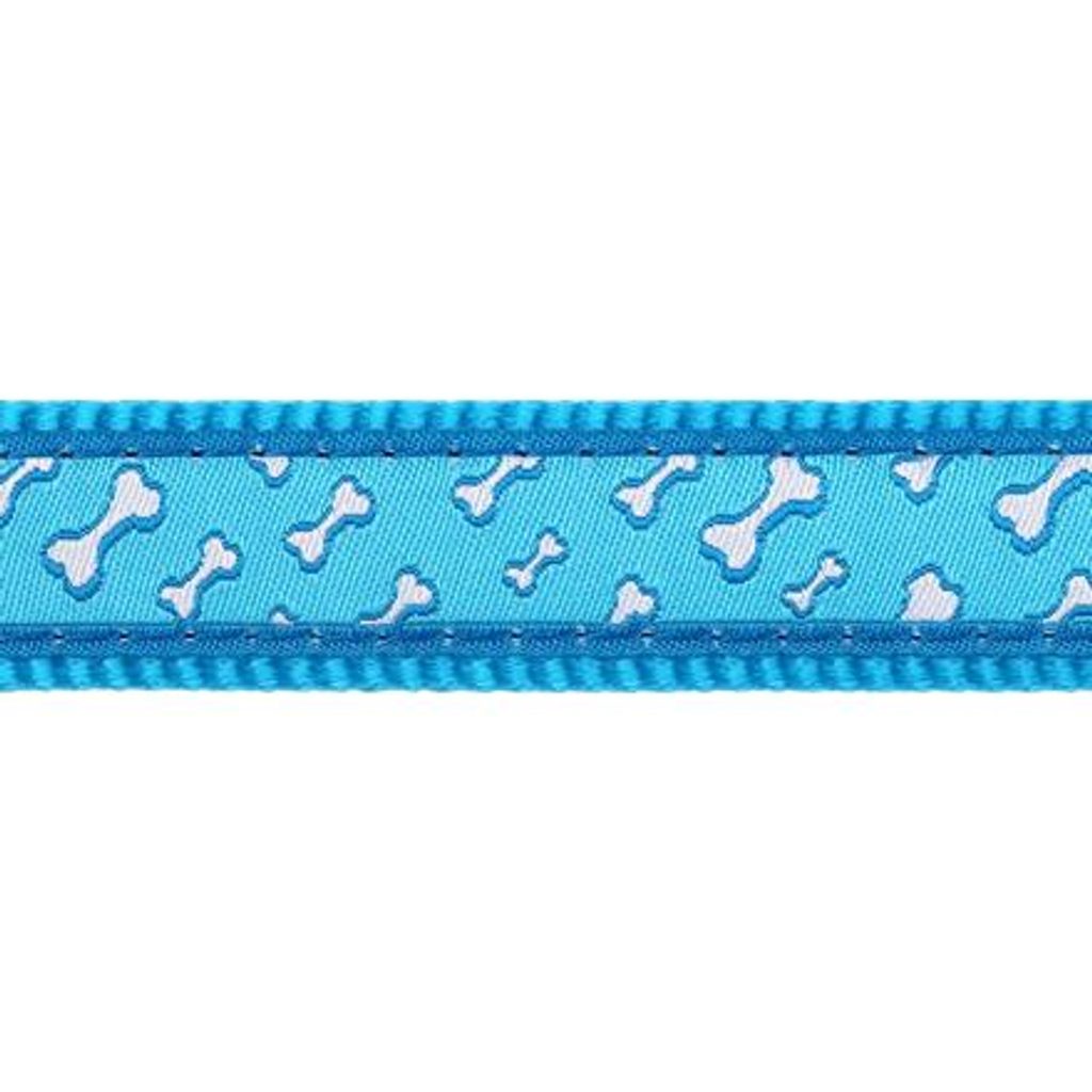 Obojek Red Dingo pro psy s obvodem krku 24 - 36 cm. Šířka popruhu 15 mm. Vzor Flying Bones Turquoise. Velikost