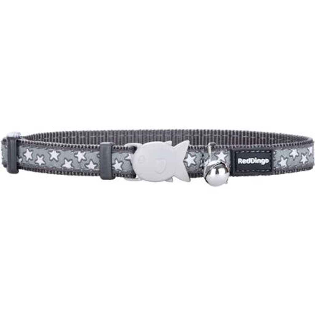 Obojek Red Dingo pro kočky s obvodem krku 20 - 32 cm. Šířka popruhu 12 mm. Vzor Stars White on Cool Grey. Velikost