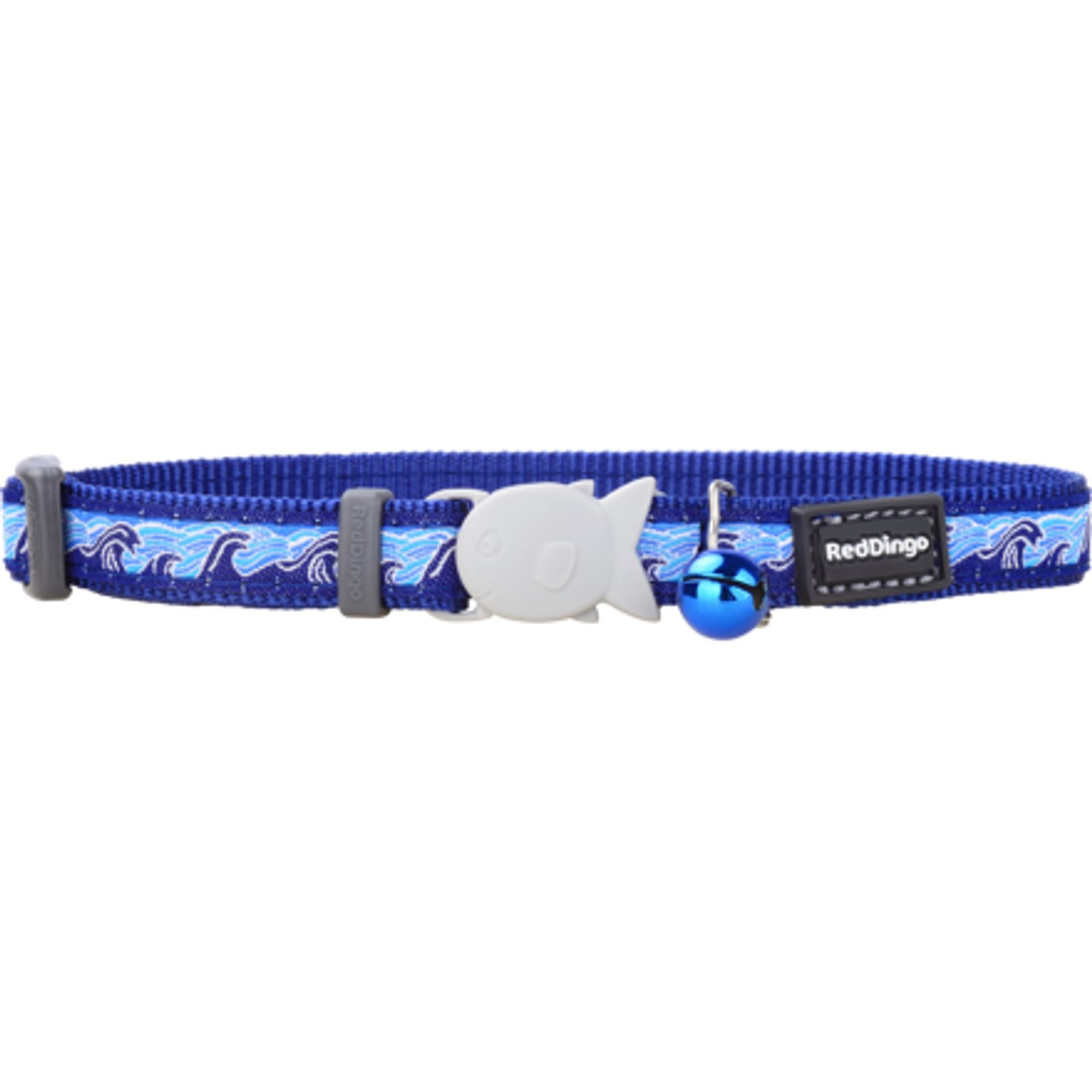 Obojek Red Dingo pro kočky s obvodem krku 20 - 32 cm. Šířka popruhu 12 mm. Vzor Vlny. Barva tmavě modrá. Velikost