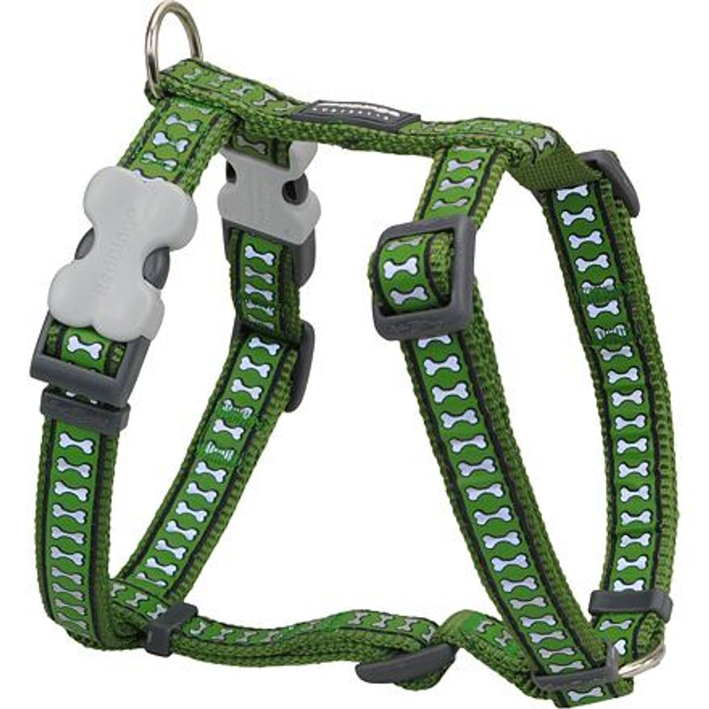 Postroj Red Dingo pro psy s obvodem hrudníku 30 - 44 cm. Šířka popruhu 12 mm. Vzor reflexní Lots a Bones. Barva tyrkysová. Velikost postroje: