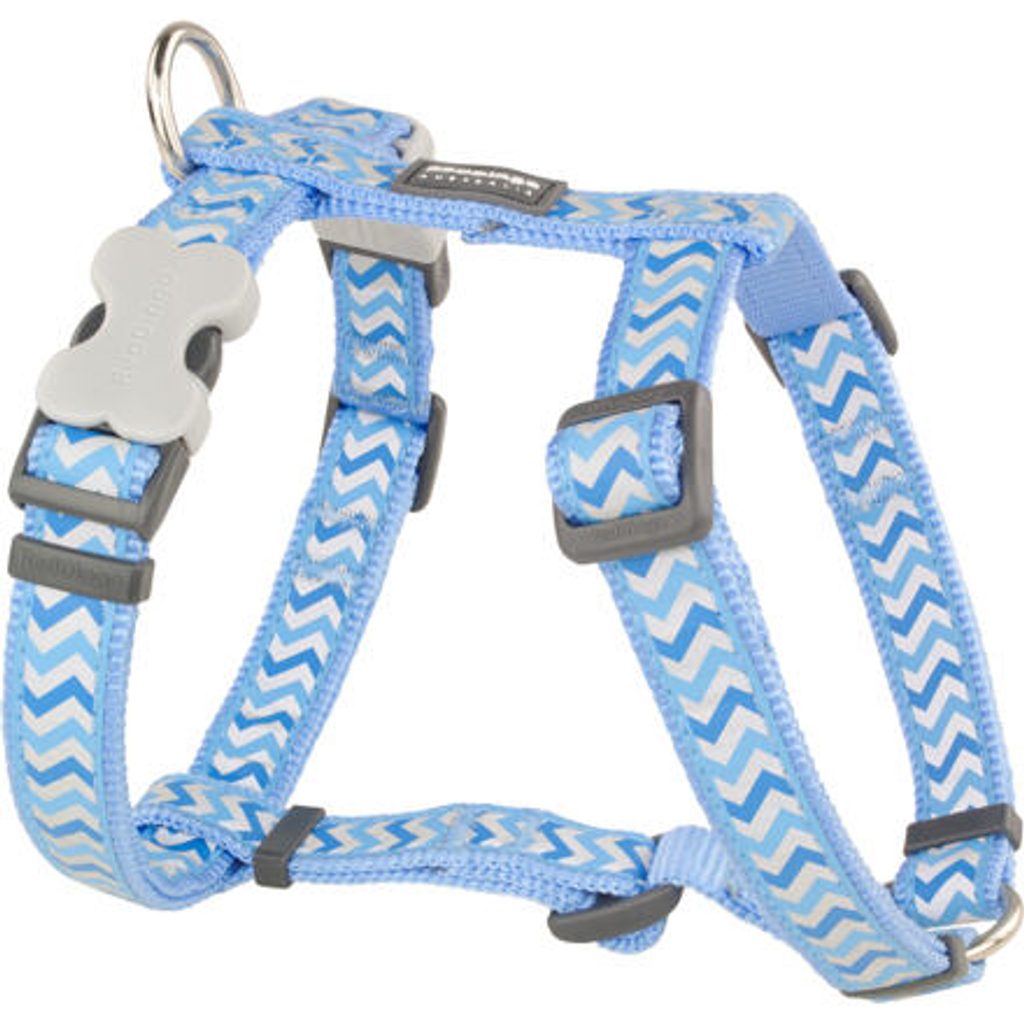 Postroj Red Dingo pro psy s obvodem hrudníku 71 - 113 cm. Šířka popruhu 25 mm. Vzor reflexní Ziggy. Barva tyrkysová. Velikost postroje: