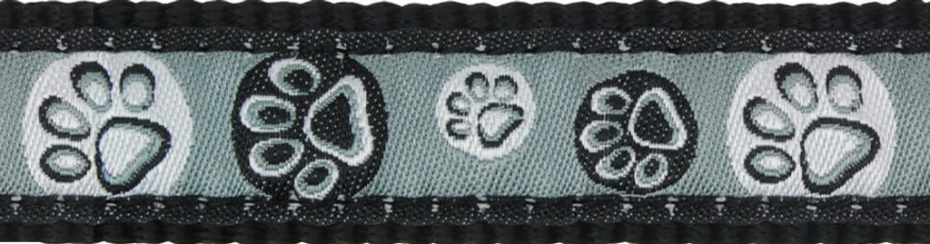Vodítko Red Dingo pro psy klasické s nastavitelnou délkou 1,0 – 1,8 m. Šířka popruhu 12 mm. Vzor Paw Impressions Black. Klasické