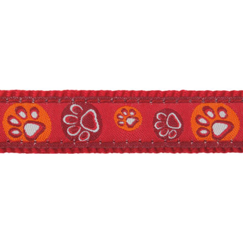 Vodítko Red Dingo pro psy klasické s nastavitelnou délkou 1,0 – 1,8 m. Šířka popruhu 15 mm. Vzor Paw Impressions Red. Klasické