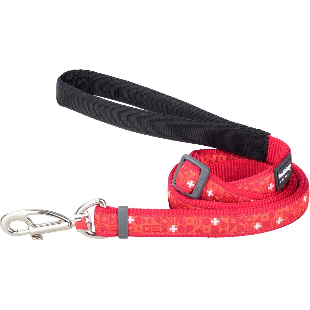 Vodítko Red Dingo pro psy klasické s nastavitelnou délkou 1,0 – 1,8 m. Šířka popruhu 20 mm. Vzor Swiss Cross. Klasické
