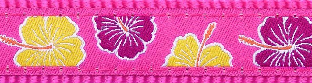Vodítko Red Dingo pro psy klasické s nastavitelnou délkou 1,0 – 1,8 m. Šířka popruhu 15 mm. Vzor Hibiscus Hot Pink. Klasické