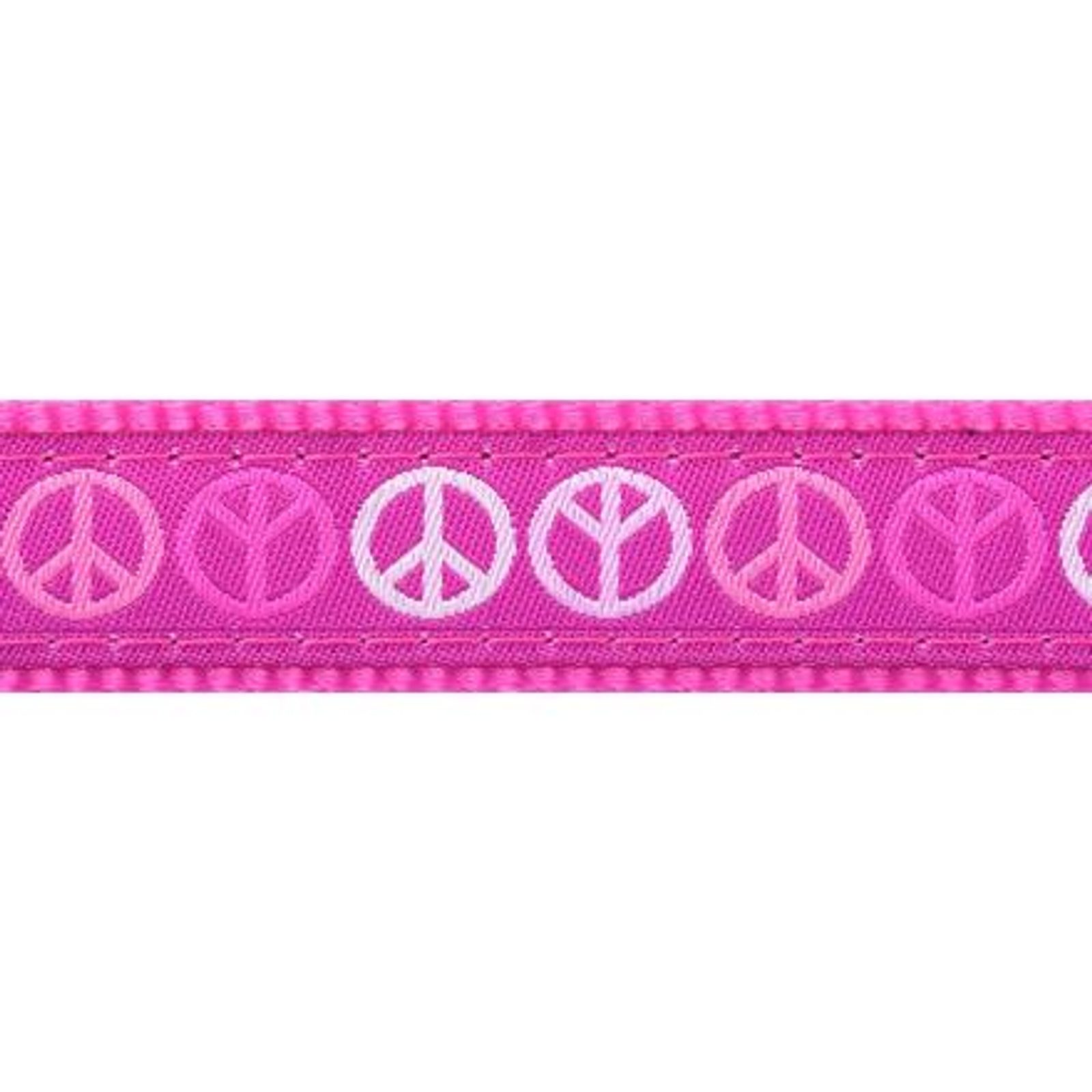 Vodítko Red Dingo pro psy přepínací s nastavitelnou délkou 1,0 – 2,0 m. Šířka popruhu 12 mm. Vzor Peace. Barva tmavě růžová. Přepínací