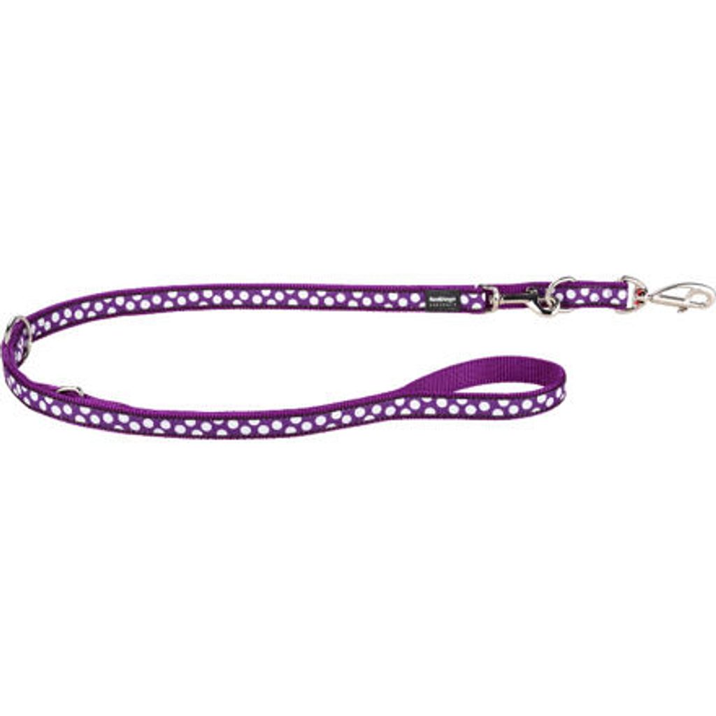Vodítko Red Dingo pro psy přepínací s nastavitelnou délkou 1,0 – 2,0 m. Šířka popruhu 12 mm. Vzor White Spots on Purple. Přepínací
