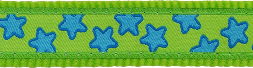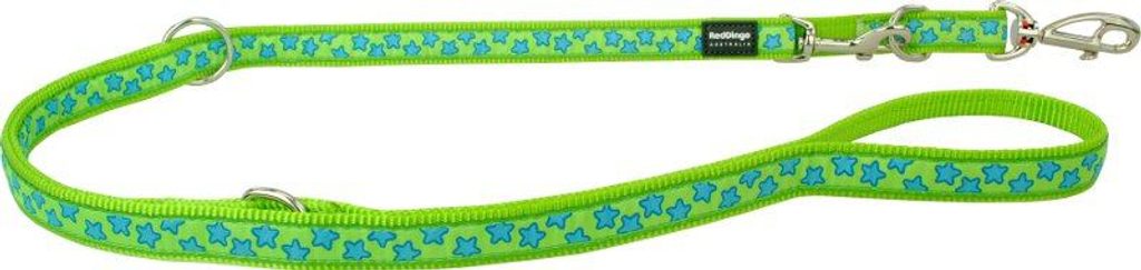 Vodítko Red Dingo pro psy přepínací s nastavitelnou délkou 1,0 – 2,0 m. Šířka popruhu 15 mm. Vzor Stars Turquoise on Lime Green. Přepínací