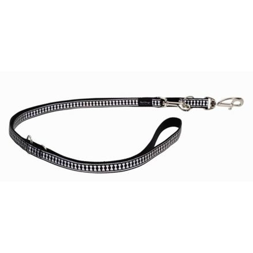 Vodítko Red Dingo pro psy přepínací s nastavitelnou délkou 1,0 – 2,0 m. Šířka popruhu 20 mm. Vzor reflexní Lots a Bones. Barva černá. Přepínací