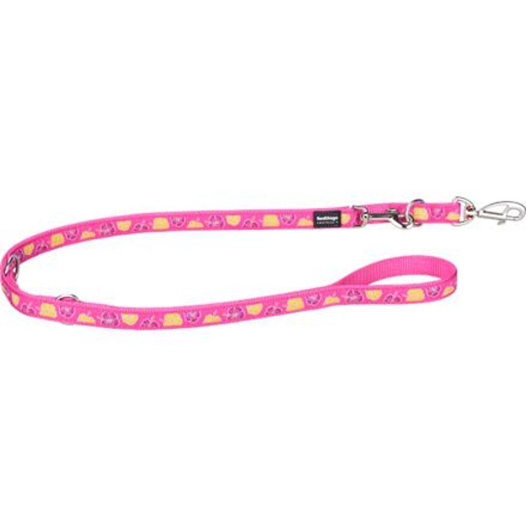 Vodítko Red Dingo pro psy přepínací s nastavitelnou délkou 1,0 – 2,0 m. Šířka popruhu 25 mm. Vzor Hibiscus Hot Pink. Přepínací