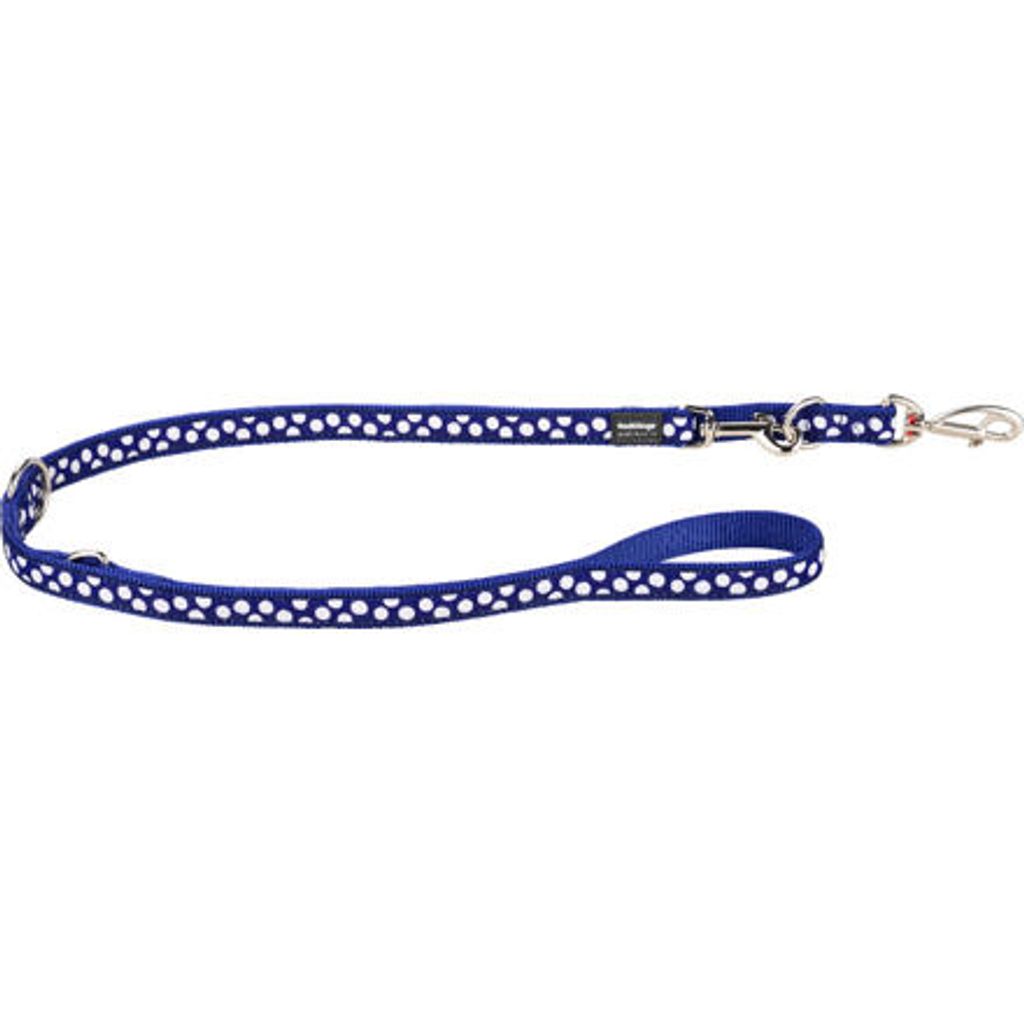 Vodítko Red Dingo pro psy přepínací s nastavitelnou délkou 1,0 – 2,0 m. Šířka popruhu 25 mm. Vzor White Spots on Navy. Přepínací