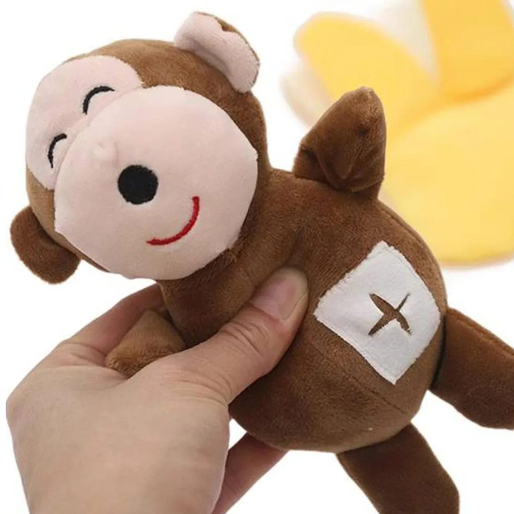 Roztomilá plyšová hračka pro psy ve tvaru opičky schované v banánu. Měkká, zábavná a ideální na mazlení i jemné hraní.