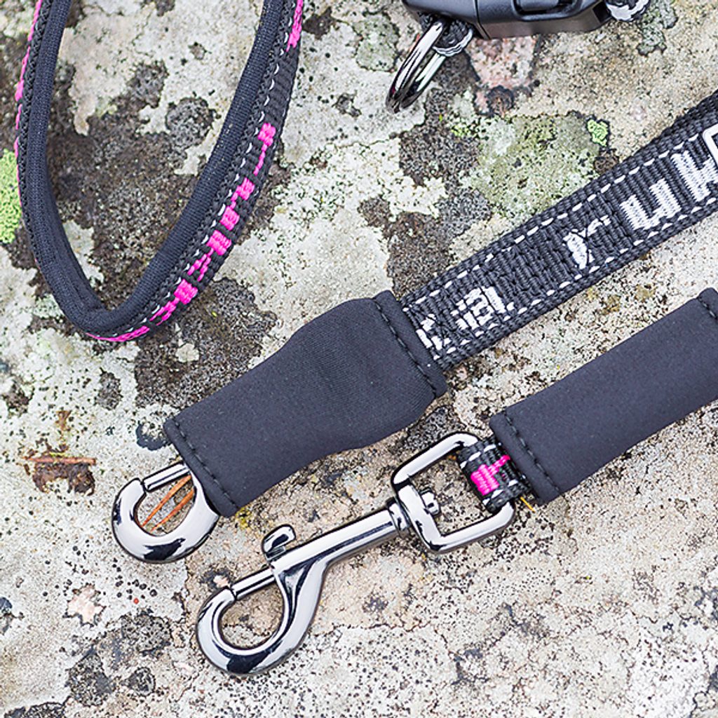 Amortizační vodítko pro vaše outdoorové aktivity lze připevnit kolem pasu pro hands-free chůzi a běh. Amortizační vodítko pro vaše outdoorové aktivity lze připevnit kolem pasu pro hands-free chůzi a běh. Neoprenem polstrovaná rukojeť je navržena pro pohodlné uchopení vodítka a má nastavitelnou velikost a pružnou část, která tlumí tah vodítka.