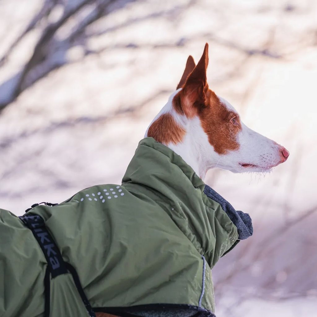 Technologicky a do detailu propracovaná bunda kombinuje lehkou a měkkoučkou (rouzměj - velmi poddajnou) vnější textílii, která je opatřena membránou pro super odolnost proti větru a vodě (vodní sloupec 5000mm) a vnitřní výplň, která je speciálně vrstvená, je měkká a porézní, proto skvěle izoluje. Díky měkké fleecové podšívce je obleček pro psy pohodlný a zároveň udržuje vyrovnanou teplotu.