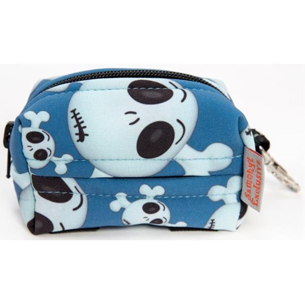 Kapsa na pytlíky zip Lebka modrá Kapsa na pytlíky zip Lebka černá Softshellová kapsička s otvorem na boku pro vytahování sáčků/pytlíků na psí exkrementy – praktický doplněk pro venčení vašeho čtyřnohého parťáka! Kapsa má kovovou karabinku, za kterou ji lze jednoduše připnout na vodítko, kabelku, batoh nebo poutko u kalhot. Díky textilním poutkům se dá také navléknout na opasek. Uzavírá se pomocí zipu. Vyhlašujeme konec plastovým krabičkám! Vyrobeno v České republice. Rozměry: 11,5 (šířka) × 6 (výška) cm
