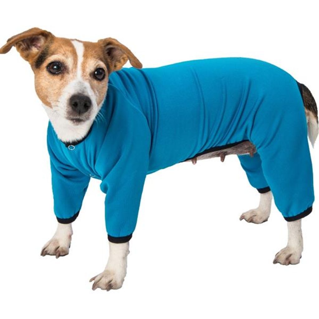 Elastický materiál – výborně padne každému. Střih neomezuje v pohybu. Vykrojení zespodu je uzpůsobeno tak, aby seděl psům a fenkám.
