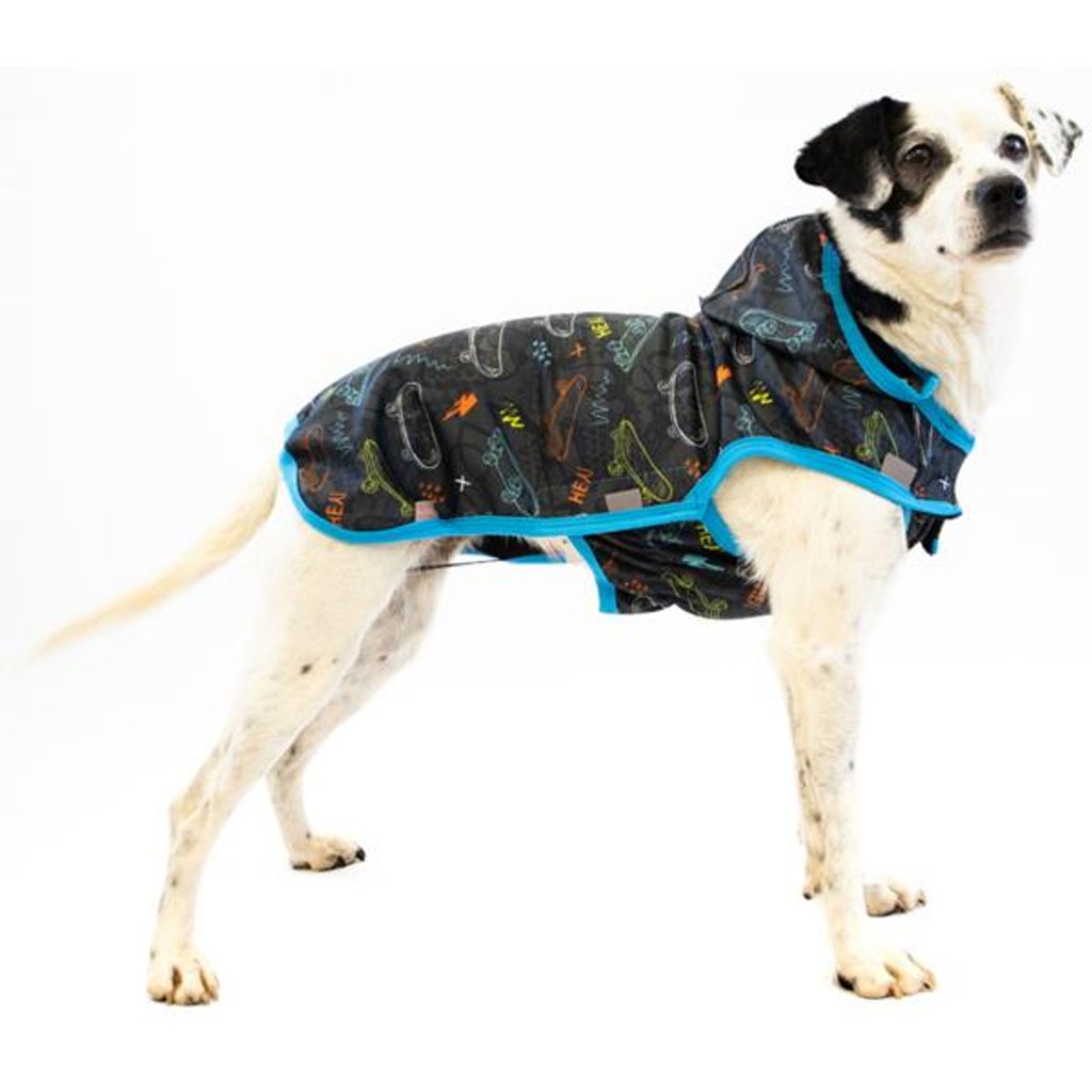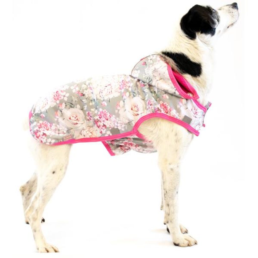 Pláštěnka Flos ochrání vašeho psa před deštěm, větrem a jiným nepříznivým počasím. Svrchní vrstva je ze softshellu. Obleček je tvarovaný anatomicky tak, aby psa neomezoval v pohybu, a přitom chránil všechny důležité partie jeho těla. Je opatřený elastickým lemem, který brání úniku tepla po jeho celém obvodu. Gumičky v zadní části zaručí, aby pláštěnka přiléhala k zadním končetinám. V oblasti šíje se nachází otvor pro připnutí vodítka k obojku a praktické poutko pro zavěšení oblečku například při jeho sušení. Díky systému suchých zipů lze pláštěnku snadno a rychle navléknout. Na obou bocích jsou pak našité zipy, kterými lze zapnout spodek oblečku zleva i zprava. Pro bezpečnější venčení za zhoršené viditelnosti je pláštěnka opatřena reflexními prvky.