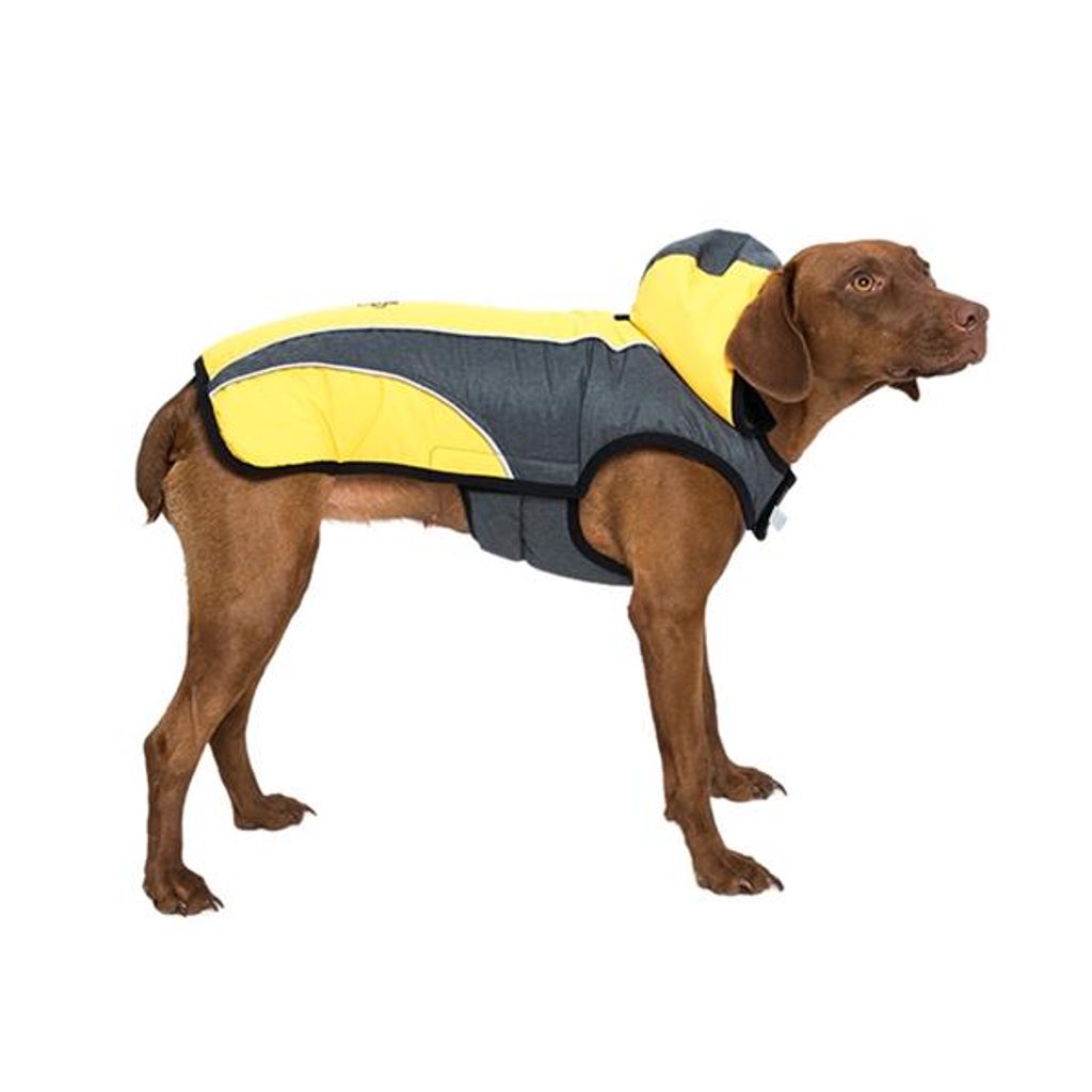 Zimní vesta ESMÉ LUX ochrání vašeho psa před chladem, větrem, deštěm i sněhem. Svrchní vrstva z bundové tkaniny s voděodolným zátěrem je zateplená vafixem a podšitá měkkým flanel fleecem, který nezacuchává srst. Obleček je tvarovaný tak, aby psa neomezoval v pohybu, a přitom chránil všechny důležité partie jeho těla. Gumičky na stehna a na ocásek zajišťují, aby vesta neodstávala v zadní části, a elastický lem brání úniku tepla po celém obvodu oblečku. Za krkem je otvor pro připnutí vodítka k obojku a poutko pro zavěšení (při sušení atd.). Oblékání je snadné a rychlé: vesta se zapíná na suché zipy – 1 pod krkem a 1 pod hrudníkem. Samozřejmostí jsou reflexní prvky.