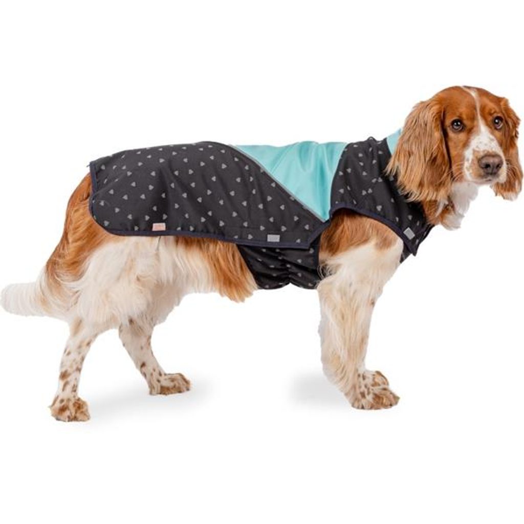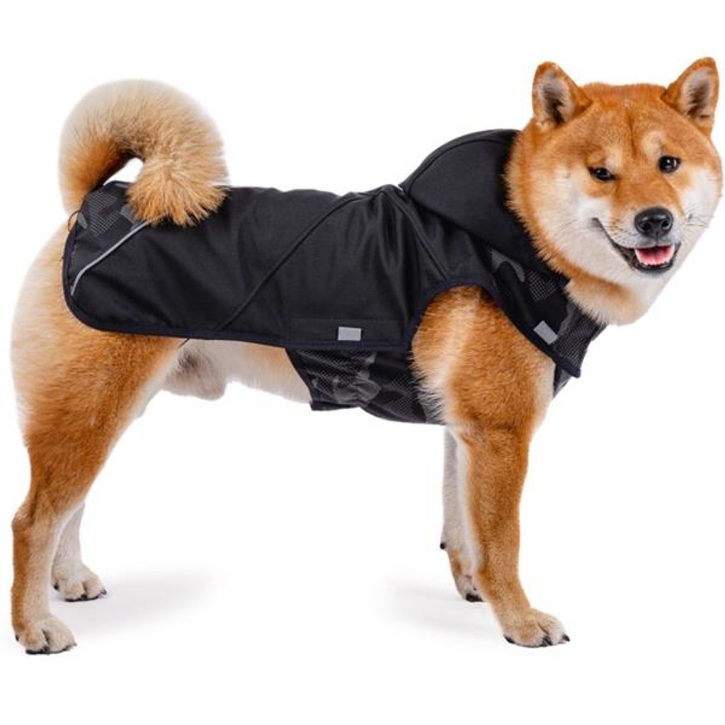 Funkční softshellová vesta Splendor chrání psa před chladem, větrem i deštěm. Vysoce kvalitní třívrstvý softshell má nejen vynikající termo- a hydroizolační vlastnosti, ale také vysokou prodyšnost a elastičnost. Střih je navržen anatomicky tak, aby psa neomezoval v pohybu, a přitom chránil všechny důležité partie jeho těla. Okraje vesty jsou obšité pružným lemem, takže obleček výborně drží na těle psa, nepodfukuje a neuniká zpod něj teplo. Gumičky na zadní nohy a ocásek zajišťují, aby vesta neodstávala v zadní části. Za krkem je otvor pro připnutí vodítka a všité poutko pro zavěšení (např. při sušení). Oblékání je snadné a rychlé díky systému suchých zipů: oboustranné zapínání pod krkem umožňuje optimální nastavení obvodu krční části a zipy na bocích umožňují zapnutí břišní části zleva i zprava. Pro bezpečnější venčení za zhoršené viditelnosti je vesta opatřena reflexními prvky.