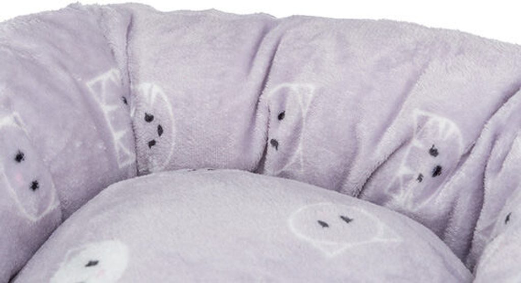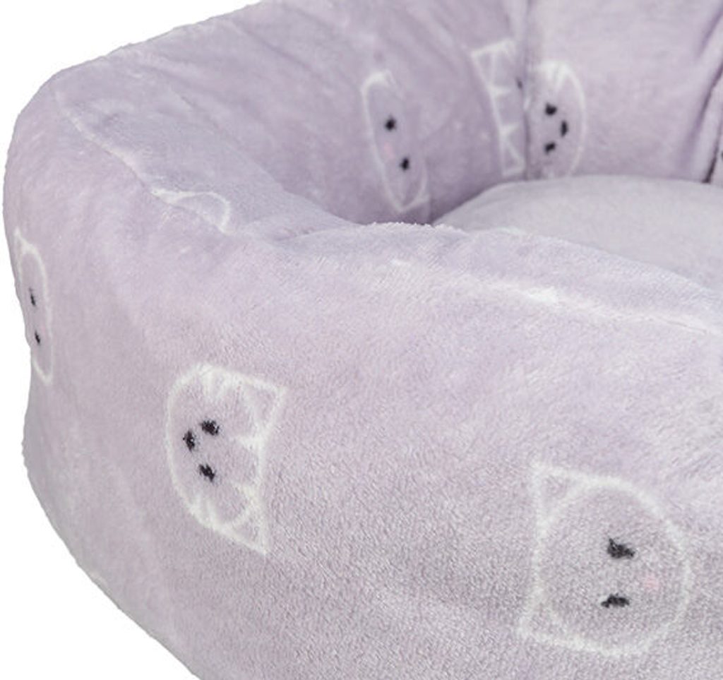 Kulatý pelíšek MIMI 50 cm, motiv kočičí hlavy, lila - LIMITOVANÁ NABÍDKA