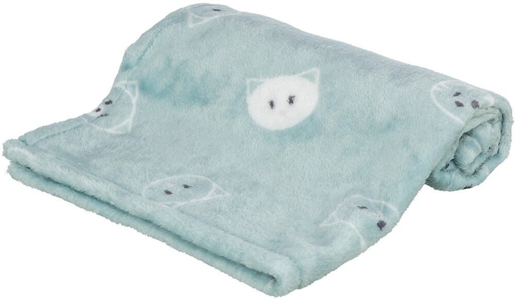 Plyšová deka MIMI, 70 x 50 cm, motiv kočičí hlavy, šalvějová - LIMITOVANÁ NABÍDKA