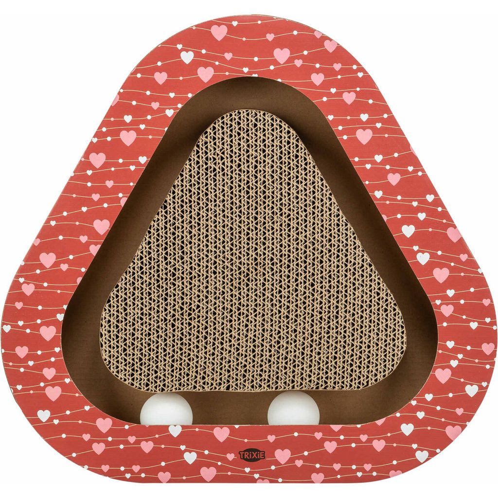 Škrabací karton VALENTINE triangl, s míčky a catnipem, 36 x 5 x 36/36 cm, červená - LIMITOVANÁ NABÍD