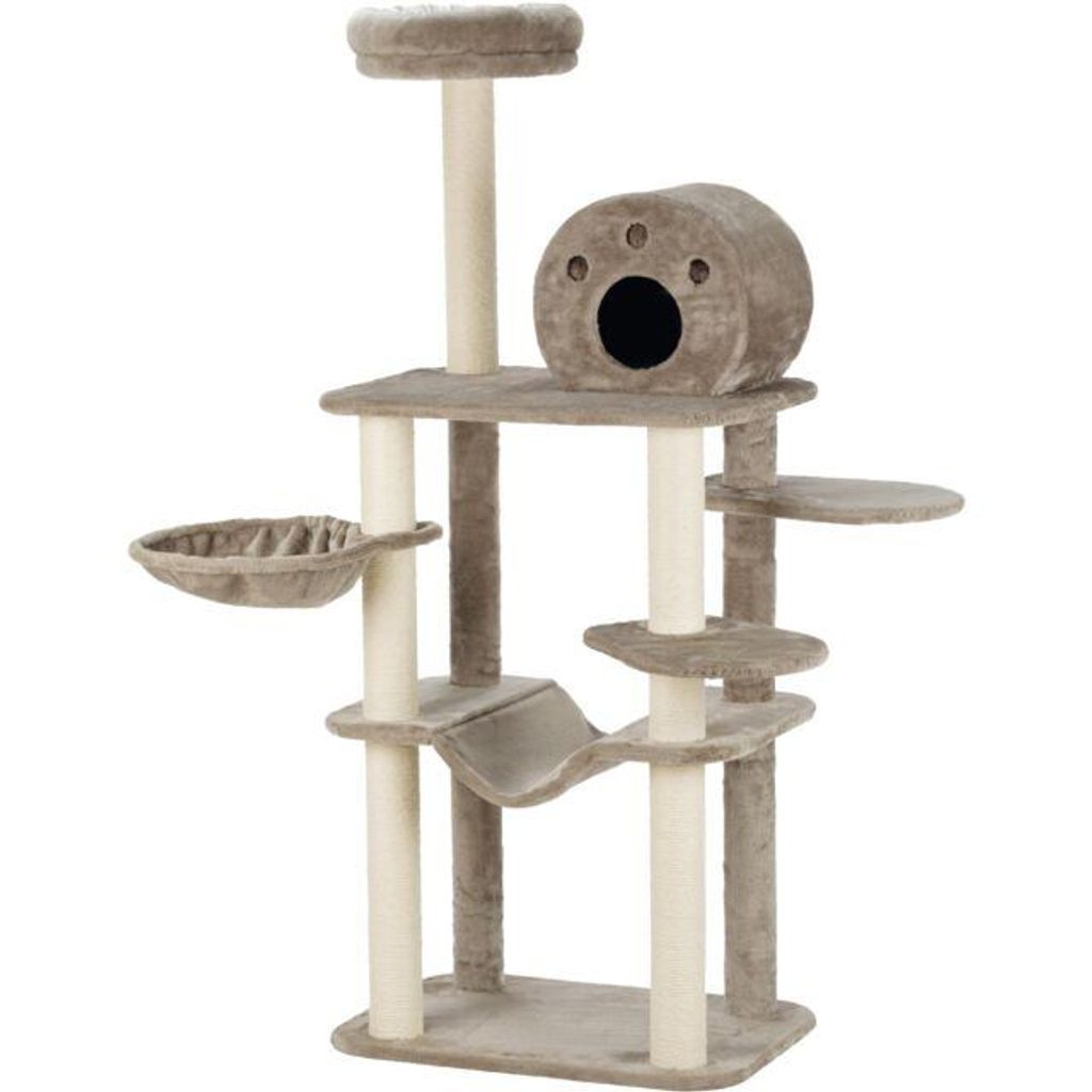 Škrabadlo FABIOLA, 4 sloupky, hamaka, jeskyně, 5 x podesta, 165 cm, šedá
